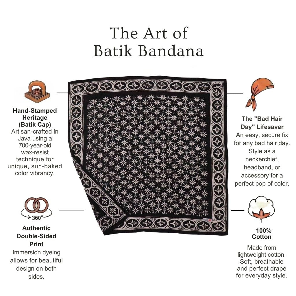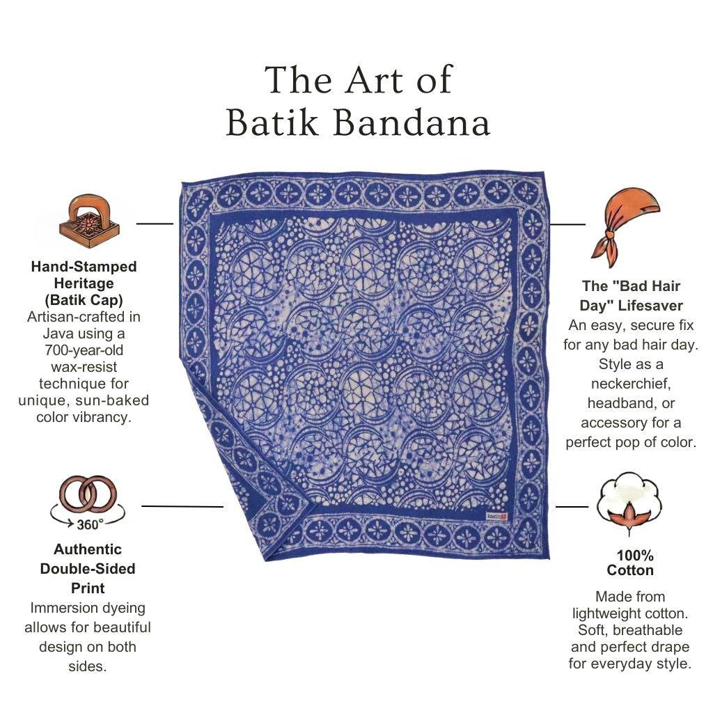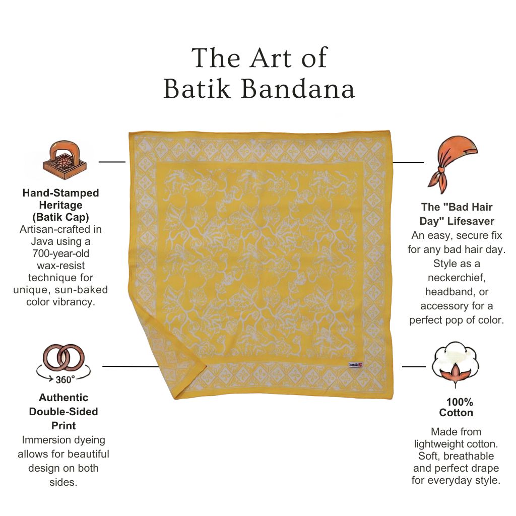 I've been wearing batik bandanas from Kasih Co-op as a headscarf when I'm riding on my husband's convertible car. I love how they are perfect size as a headscarf! :) Now I have four different colors/designs to mix and match with my outfit.