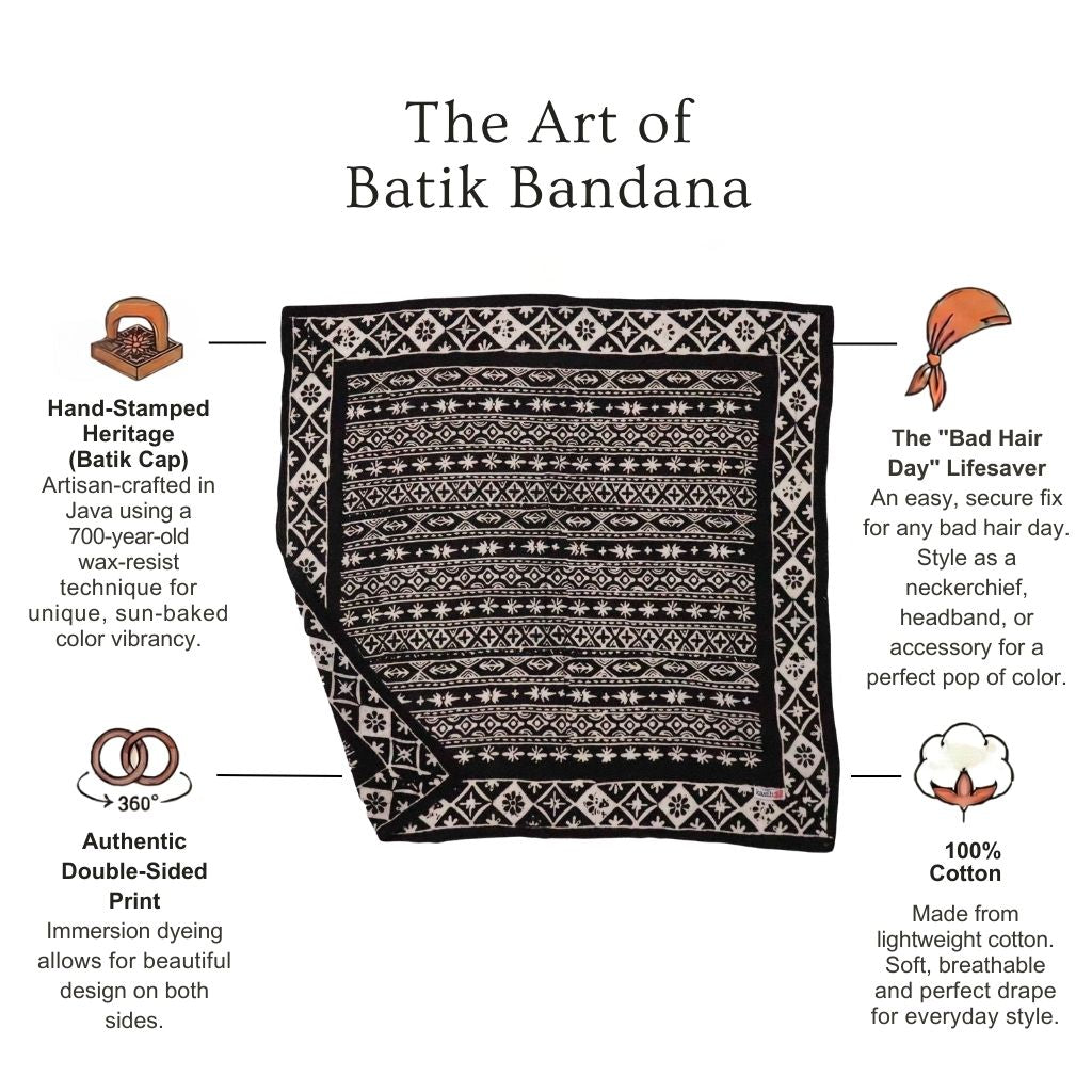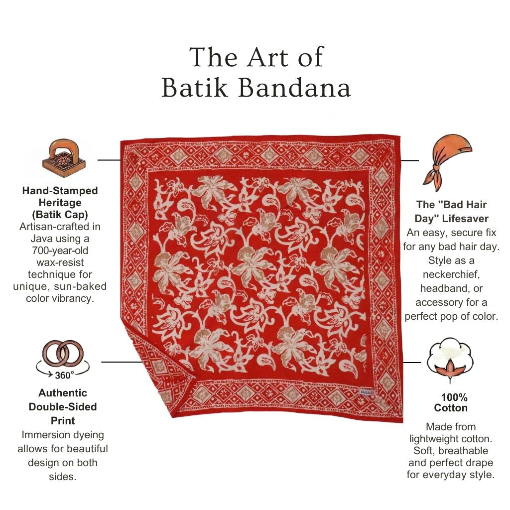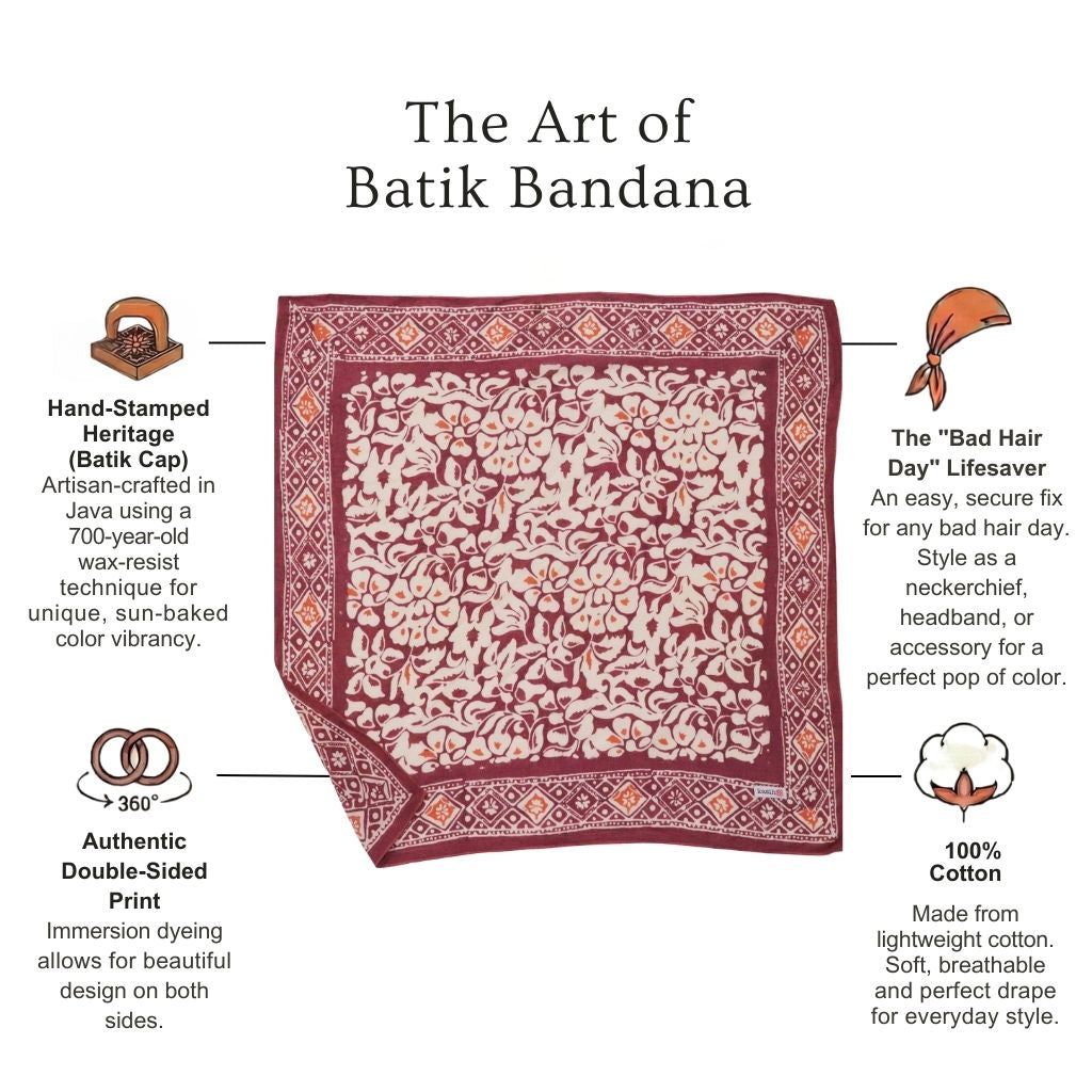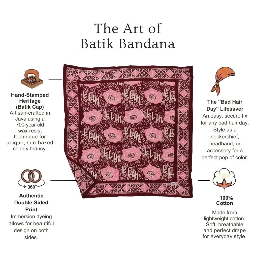 I've been wearing batik bandanas from Kasih Co-op as a headscarf when I'm riding on my husband's convertible car. I love how they are perfect size as a headscarf! :) Now I have four different colors/designs to mix and match with my outfit.