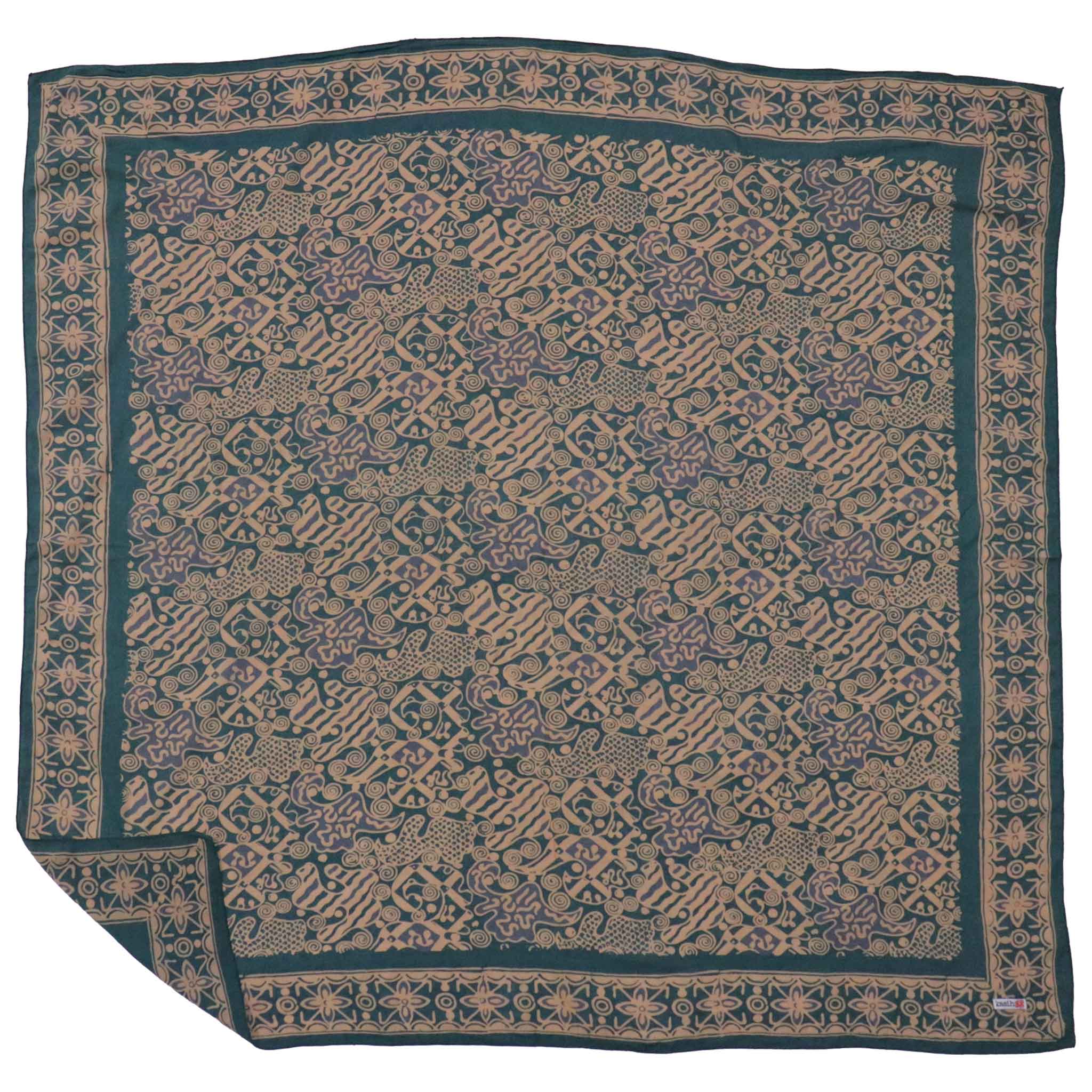 Large 39" Hand Dyed Batik Bandana, 100% Soft Cotton, Abstract Flowers, Teal, Patina Blue