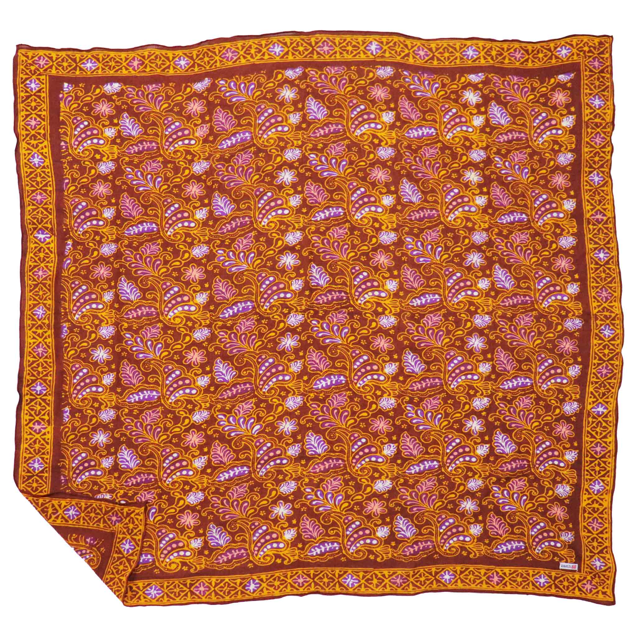 This is a hand-dyed and hand-stamped batik bandana, handmade by artisans. This fabric is handmade by artisans in Java using centuries old wax & dye batik technique.