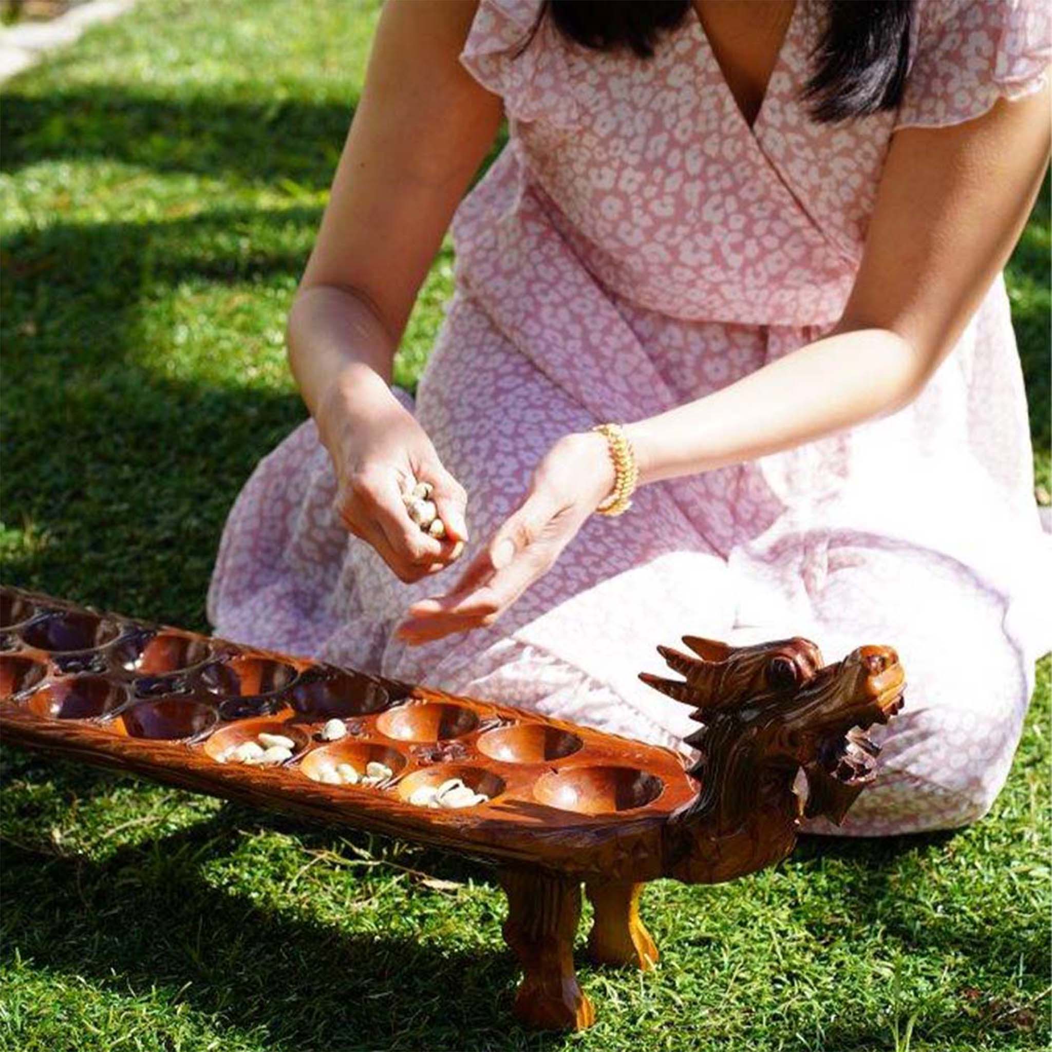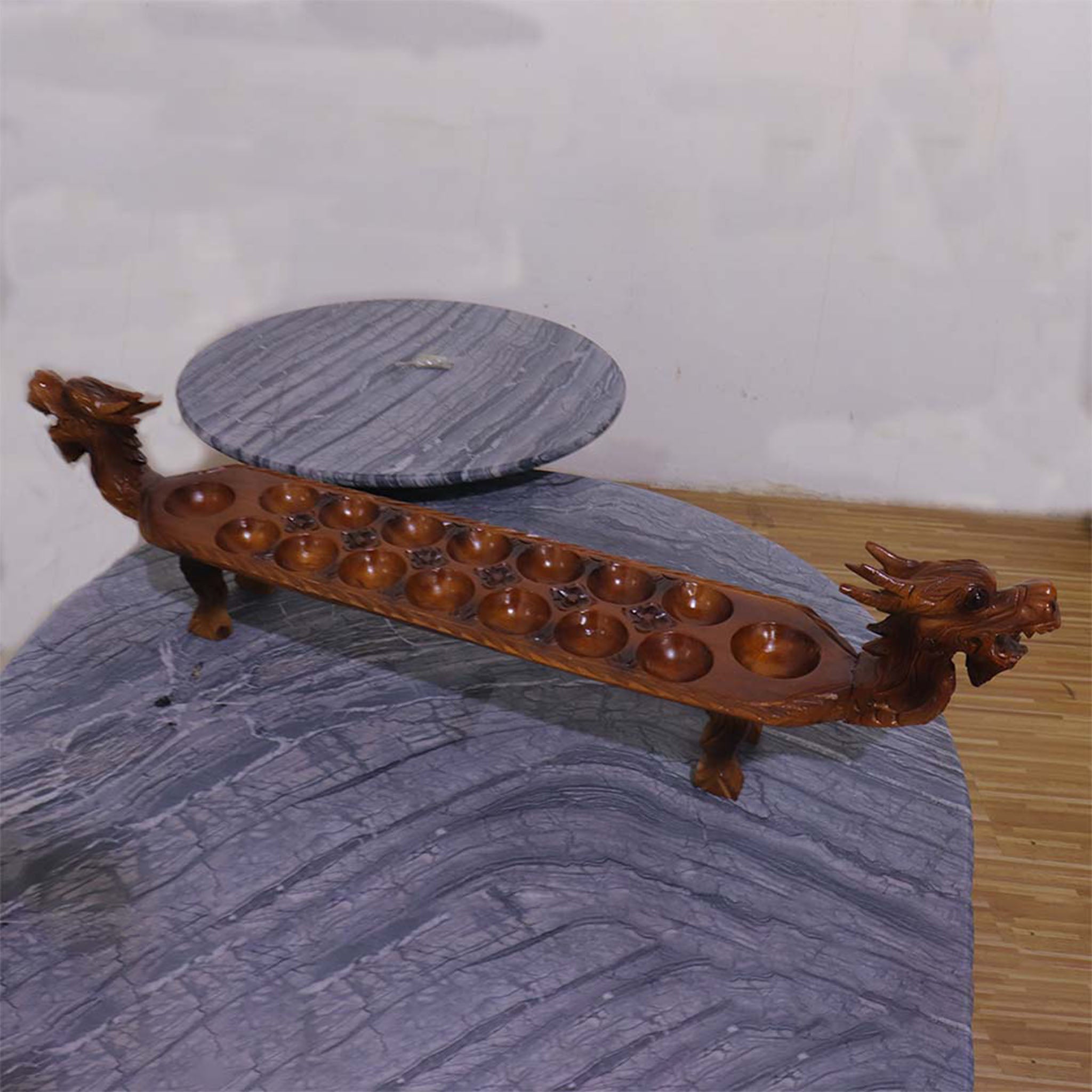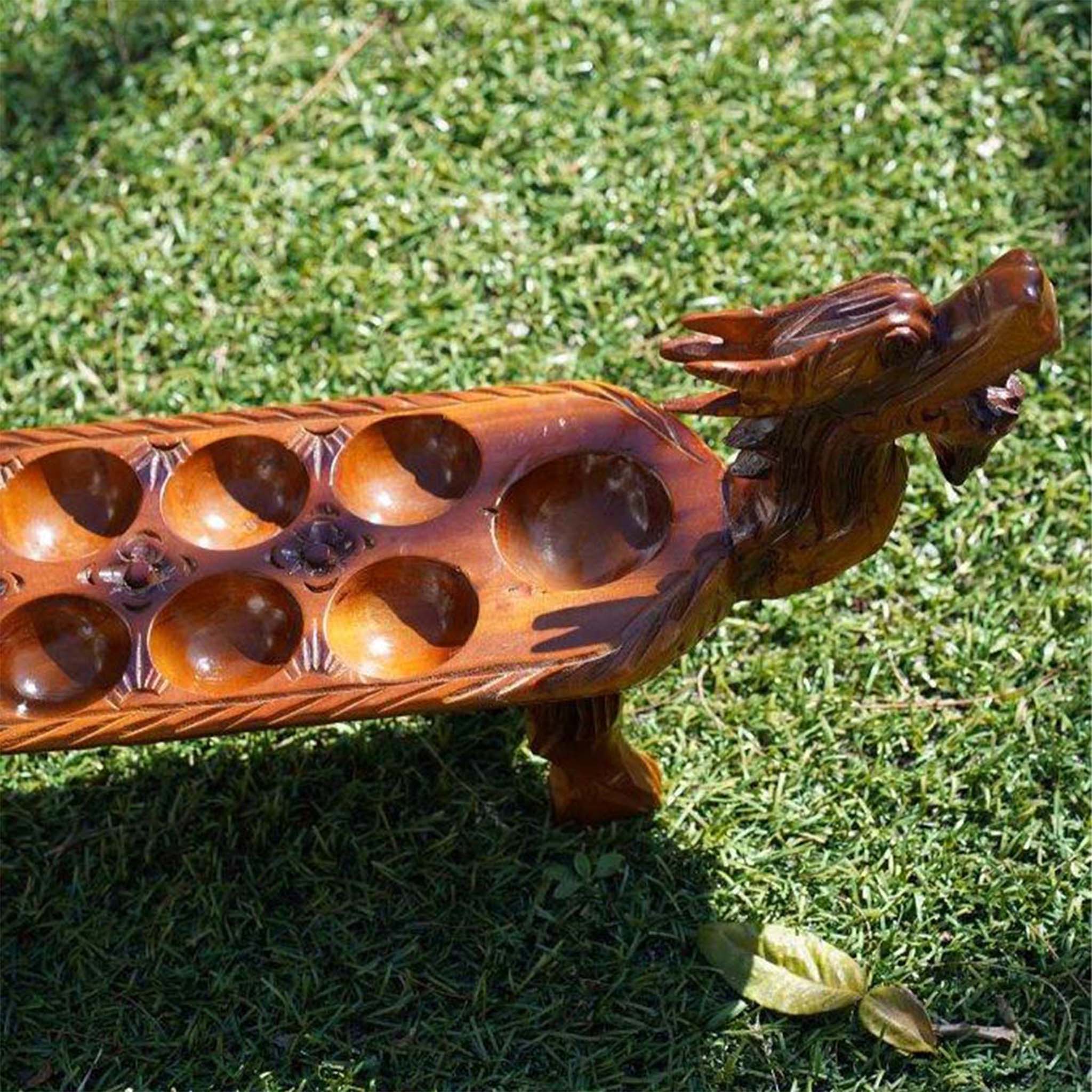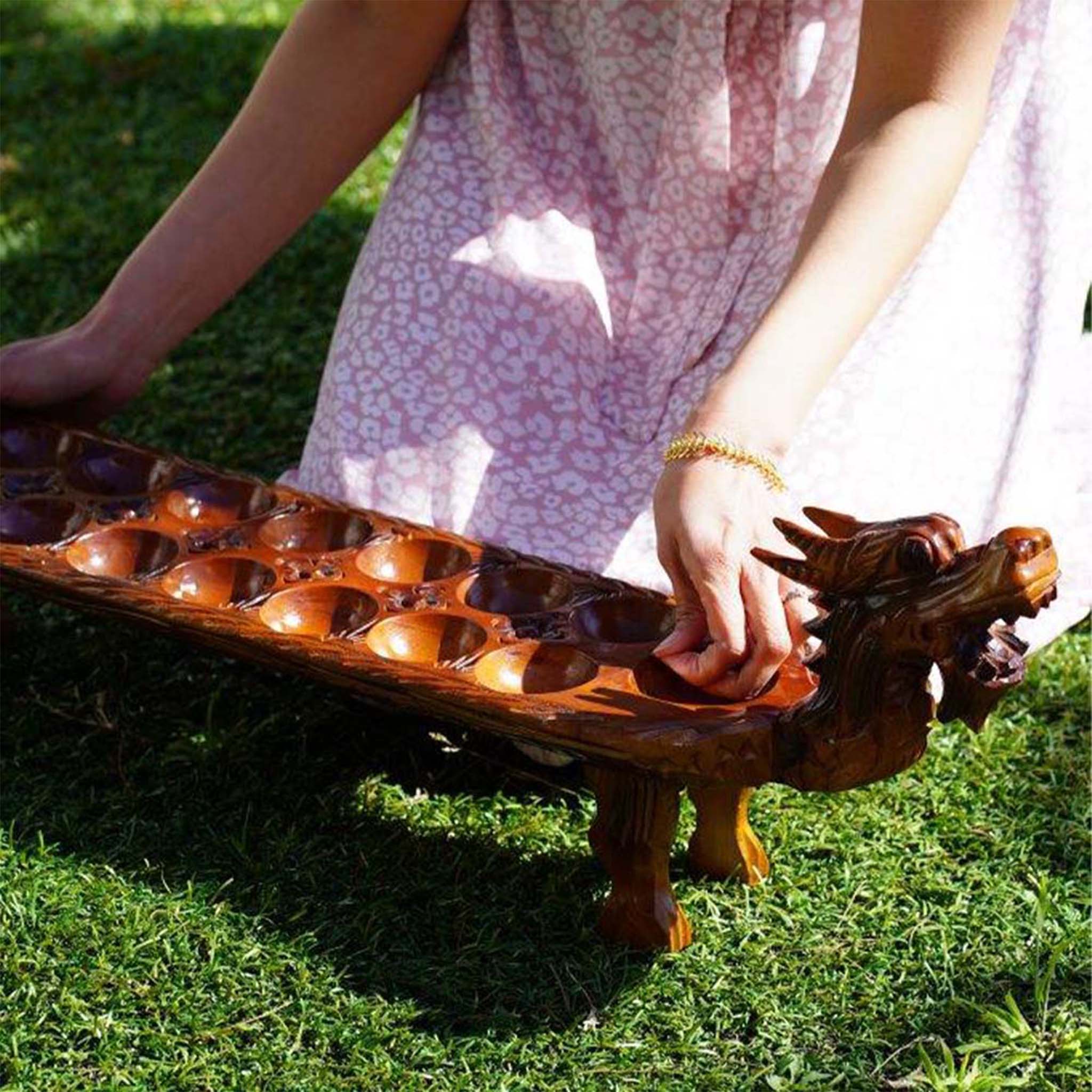 Mancala Teak Wood Dakon Congklak Naga Board Game, Dragon Head Board Game