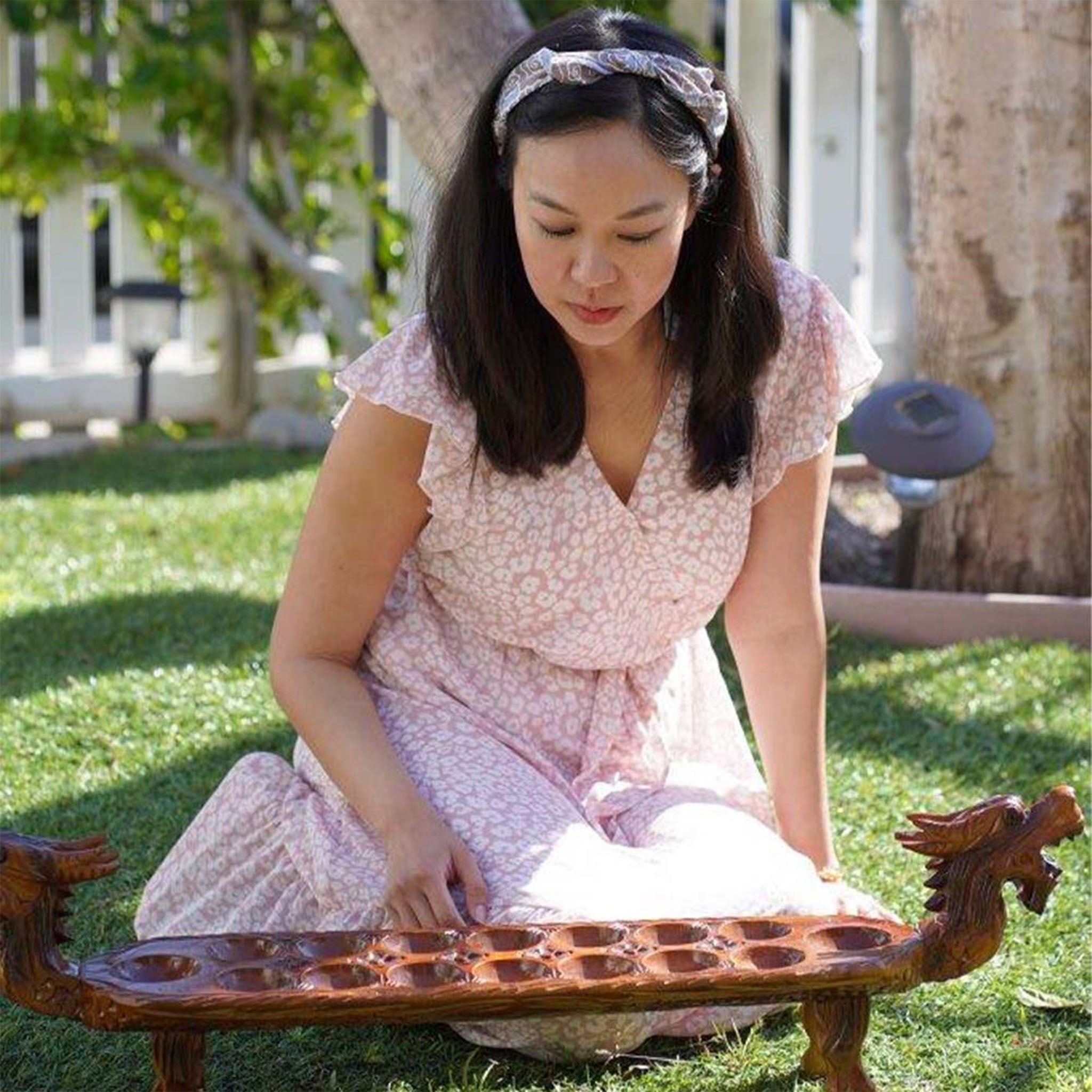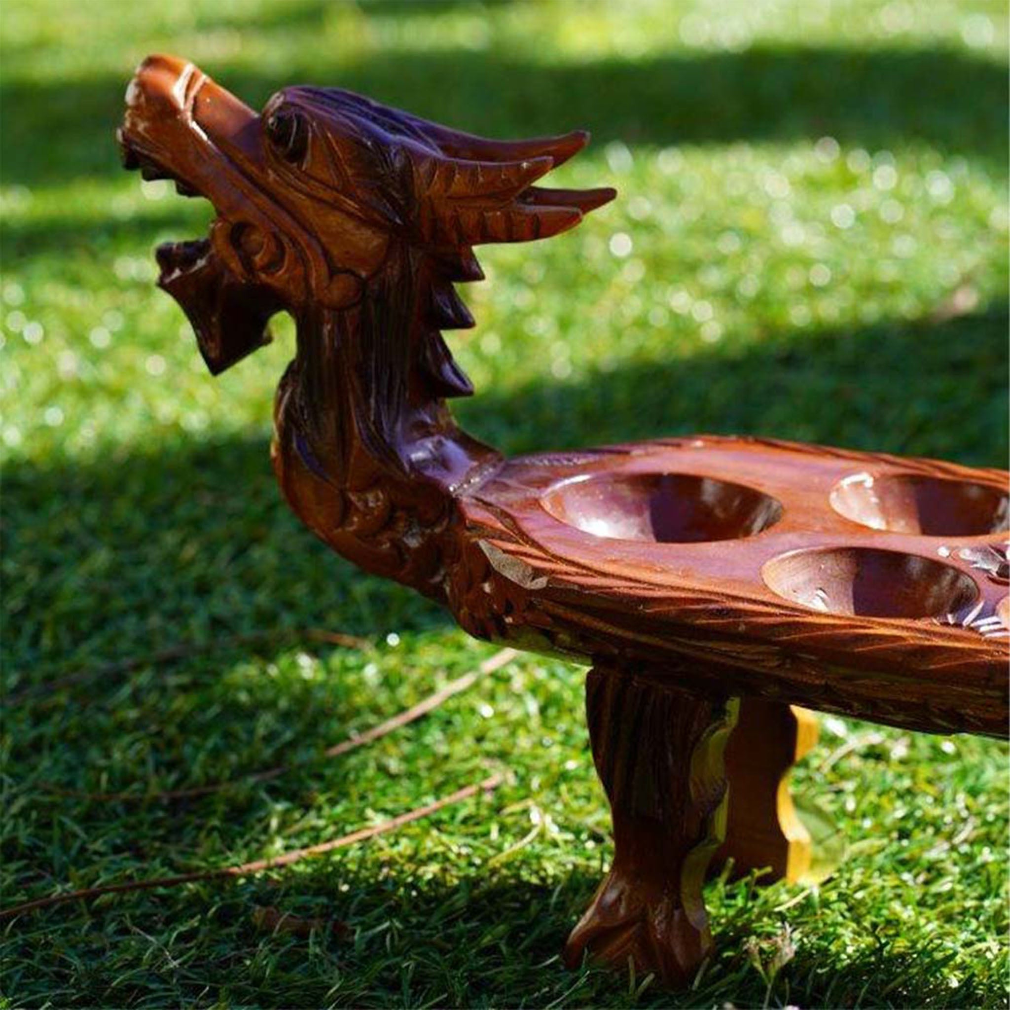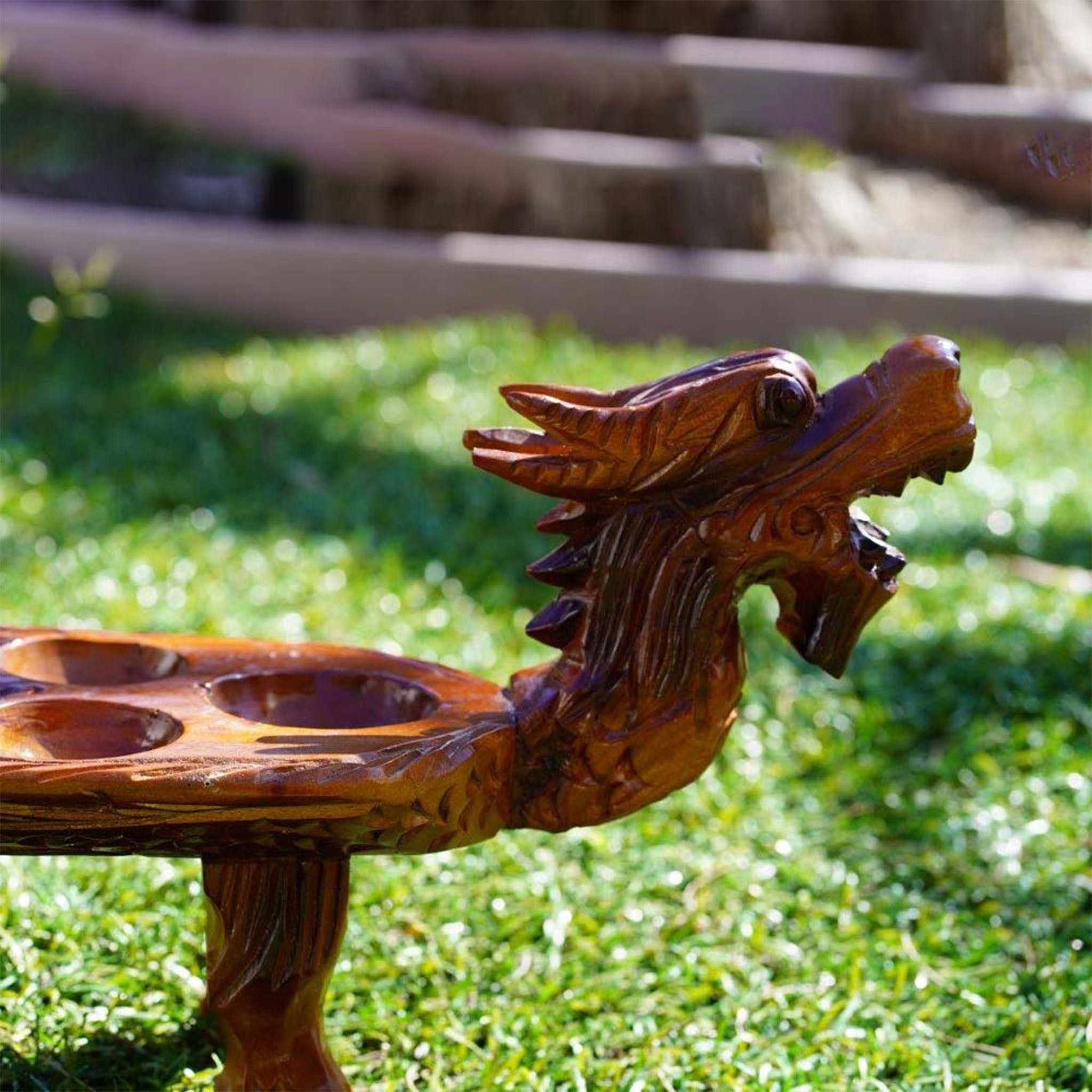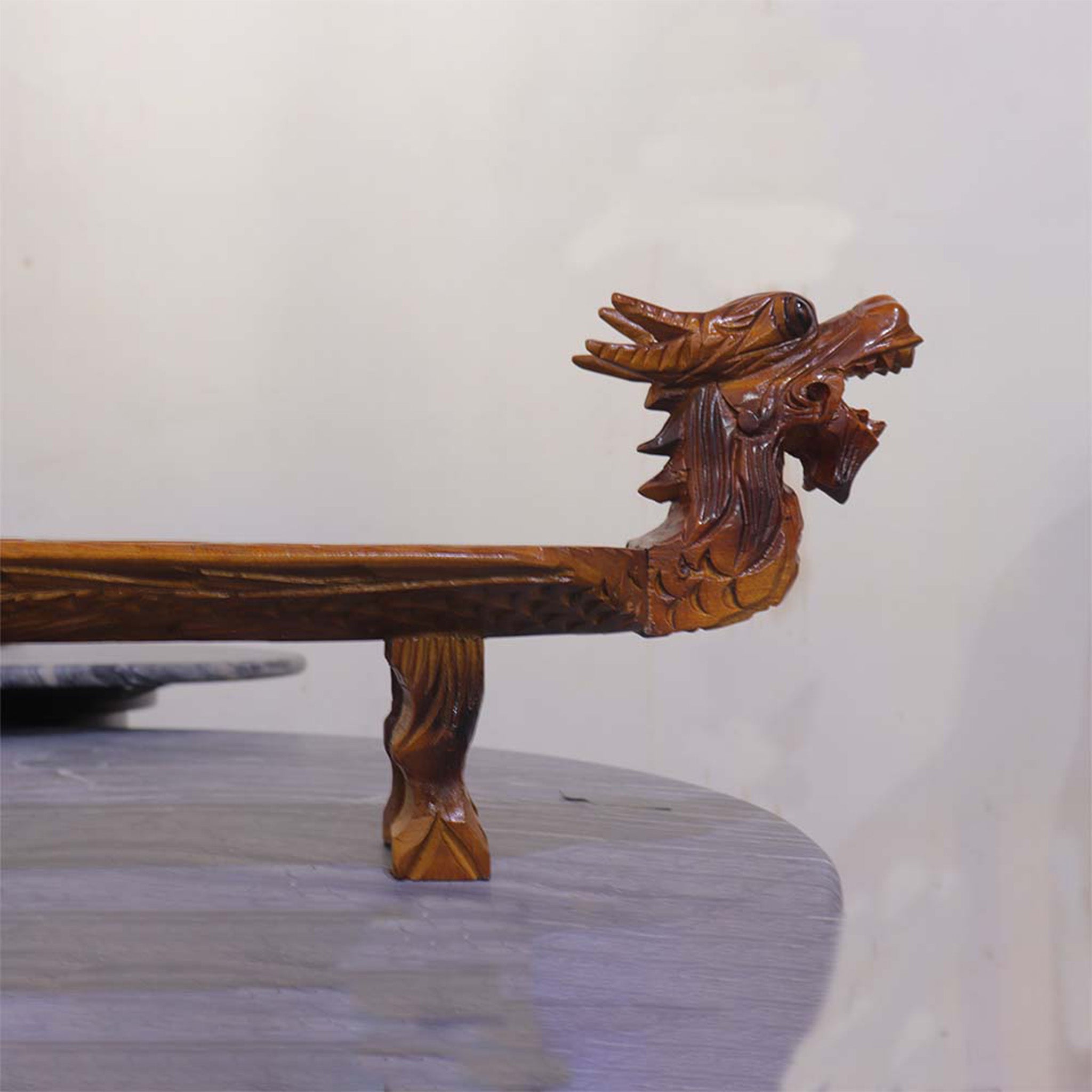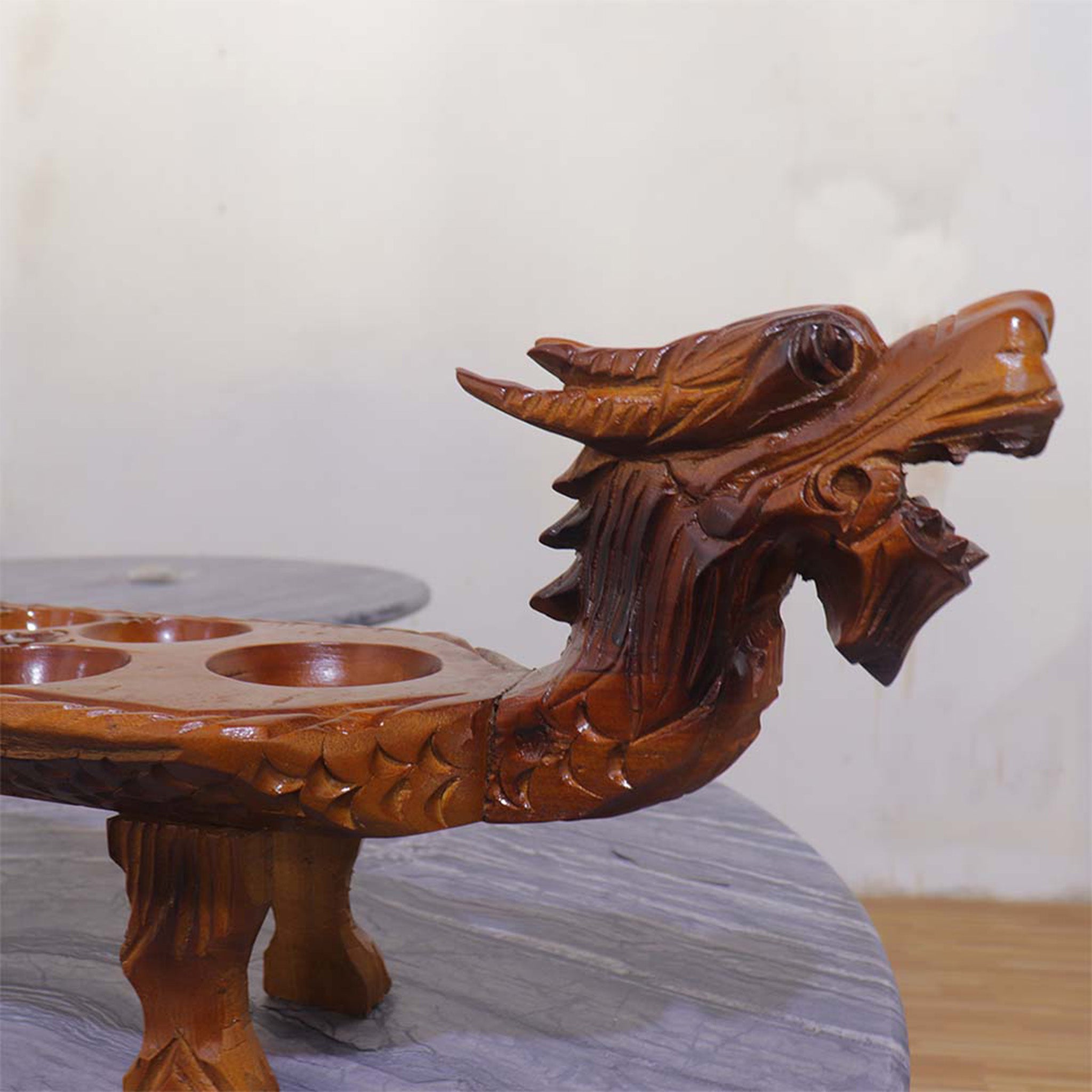 Mancala Teak Wood Dakon Congklak Naga Board Game, Dragon Head Board Game