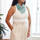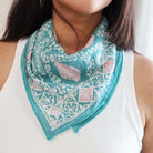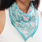 Hand Dyed Batik Bandana, 100% Soft Cotton, Scale in Blue and Pale Pink, Mint Green