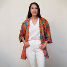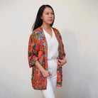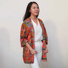Cotton Kimono, Kimono for Women, Woman Kimono, Women robe, Woman Robe, Batik Clothing, Batik Robe, Batik Kimono, Artisan Clothing, Cotton Robe, Woman Cotton Robe, Orange, Orange Robe, Orange Kimono, Flower Kimono, Hand Stamped Batik, Handmade Kimono, Handmade Robe, Short Robe Woman, Short Kimono Woman, 100% Cotton Kimono Robe, Handmade Kimono Robe, Handpainted Kimono Robe, Boho Robe, Bohemian Kimono, Boho Dress, Boho Wrap, Boho Maxi Dress, Boho Cardigan, thin kimono robe, yukata, long kimono robe, 100 cotton bathrobe, linen robe, stylish kimono, block shop textile robe, colorful robe, sleepwear robe