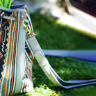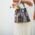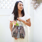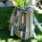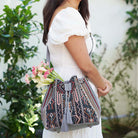Handwoven Ikat Natural Dye Bag and Leather in Multi Color and Gray Leather