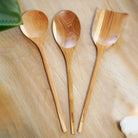 This is a set of 3 kitchen cooking utensils set made by artisans in Indonesia from Indonesian government certified lumber producer.