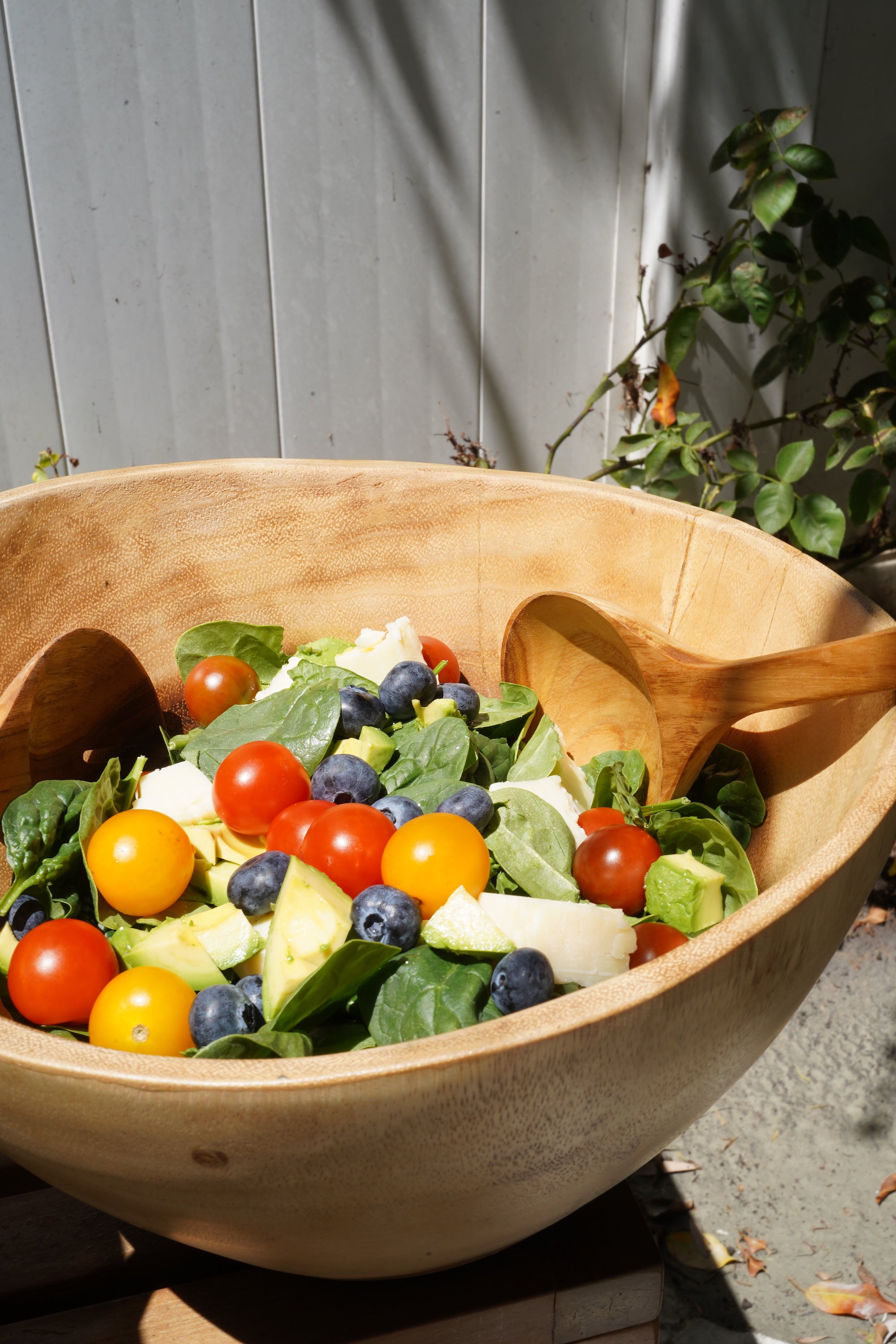 - Perfect for serving salad, fruit, chips, pasta or resting dough. Each bowl is heavy at about ~3 lbs weight. It is made from one solid wood instead of pieces of wood glued together.