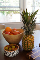 This is a suar wood salad bowl that is handmade by artisans in Jepara, Java, Indonesia sourced from Indonesian government certified lumber producer.
