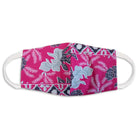 This is a washable three layer batik face mask with pocket insert and elastic strap around the ears.