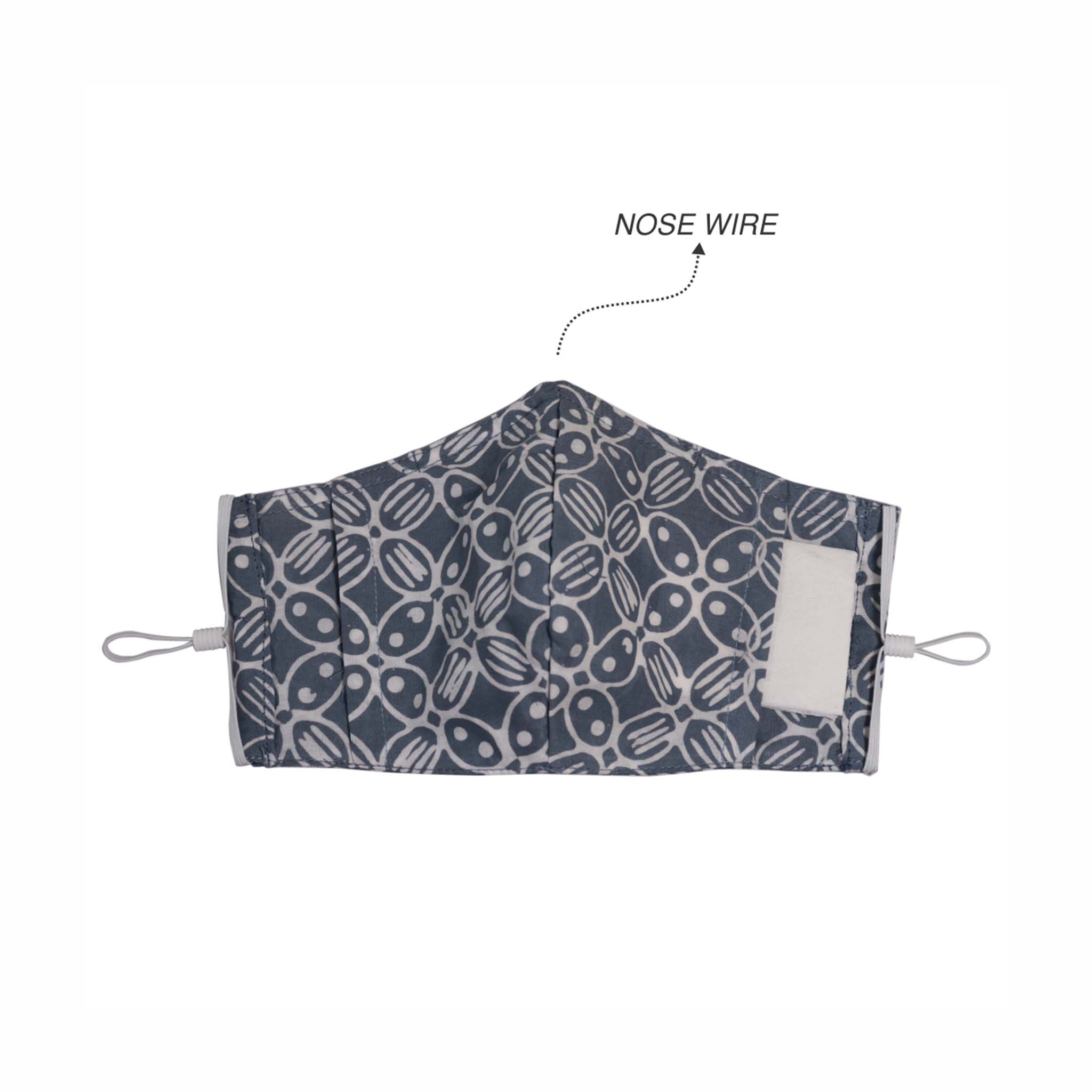 - Has nose wire and adjustable elastic ear strap.