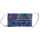 This is a kids size washable rectangle batik face mask with pocket insert and elastic strap around the ears.