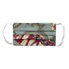 This is a kids size washable rectangle batik face mask with pocket insert and elastic strap around the ears.