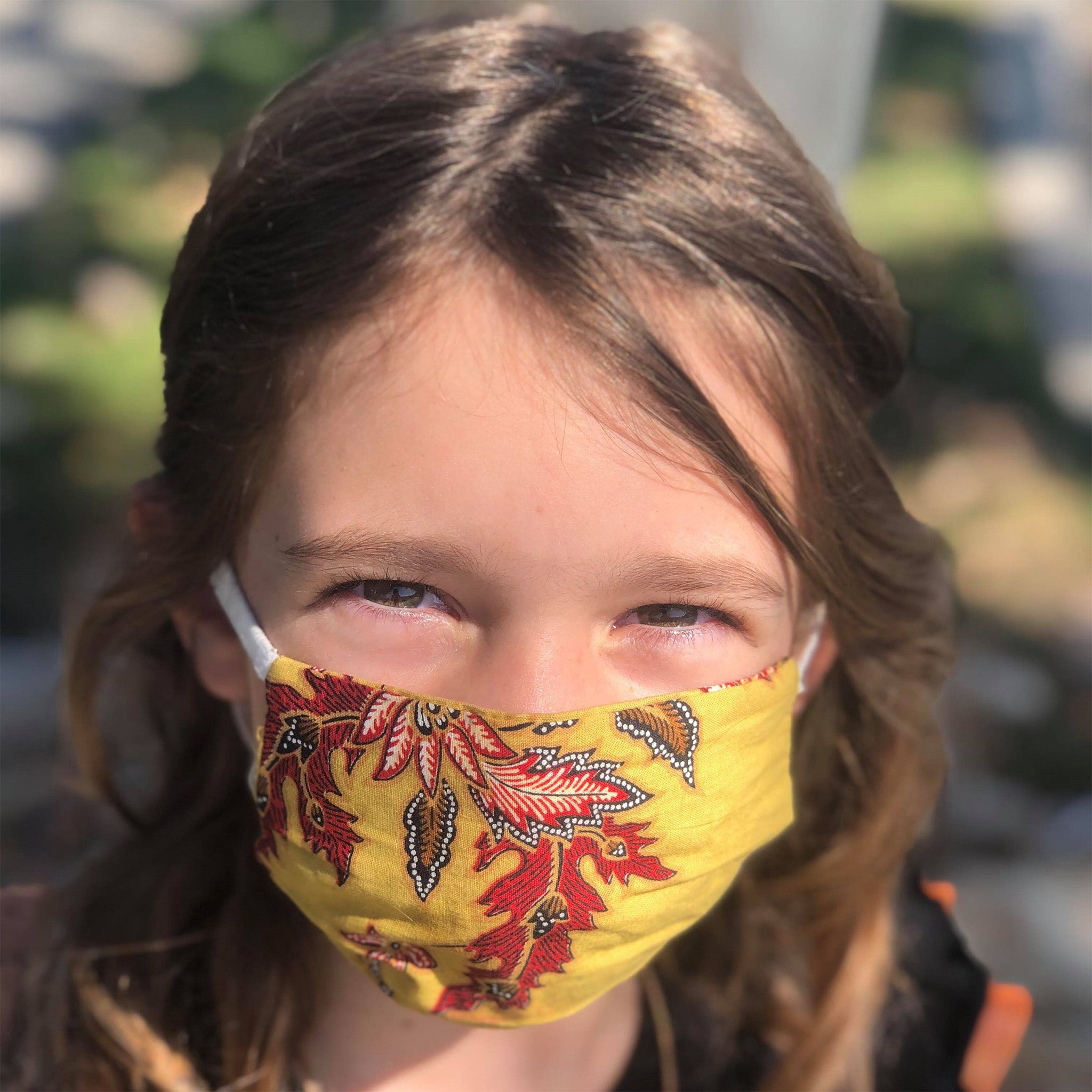 Kids Rectangle Batik Face Covering - Yellow Mustard