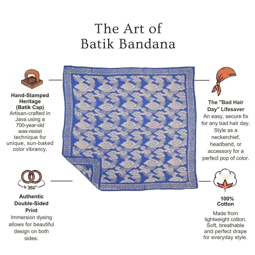 Unlike synthetic polyester that can be itchy and non-absorbent, our cotton bandanas are made from high-quality, breathable natural fibers. This makes them the perfect soft cotton bandana for sensitive skin, all-day wear as a headscarf, or even as a durable pet accessory. Because we use a traditional Batik wax-resist dyeing process, the cotton becomes even softer with every wash, offering a vintage feel that mass-produced printed bandanas can't match.