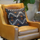 Handmade ONE ikat pillow cover with Black pattern, Heritage Fire.