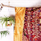 - This throw is handwoven where each thread is hand dyed and laid out to make a pattern before being weaved.