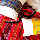 - This throw is handwoven where each thread is hand dyed and laid out to make a pattern before being weaved.