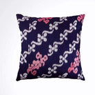 Handmade ONE ikat pillow cover with blue, pink and white pattern.