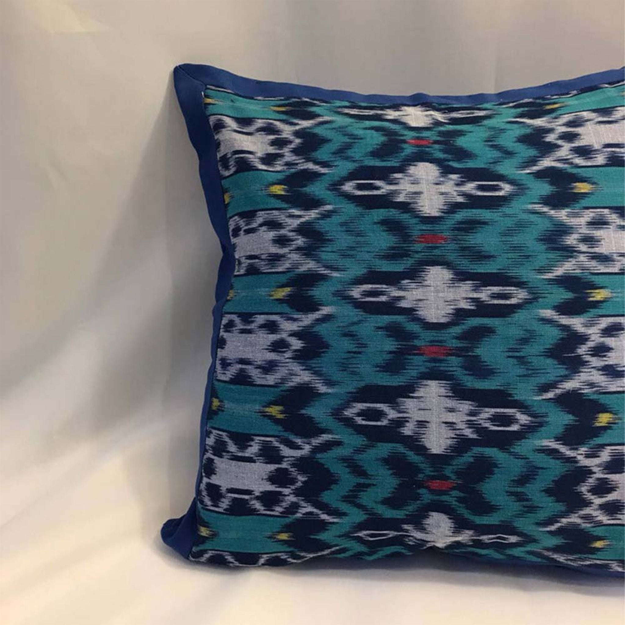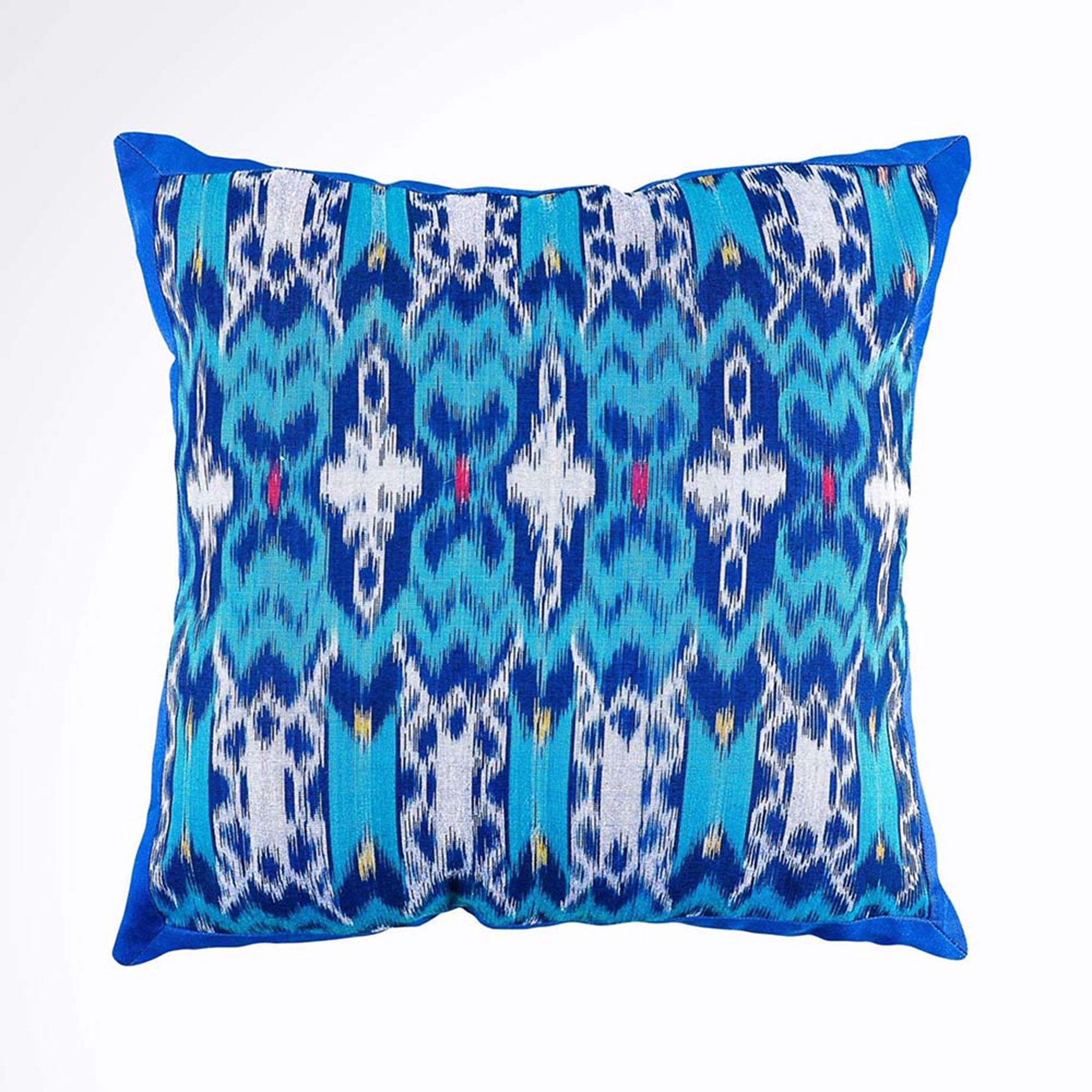Handwoven Ikat Pillow Cover, Blue. Cover Only with No Insert. 16" x 16", Cushion