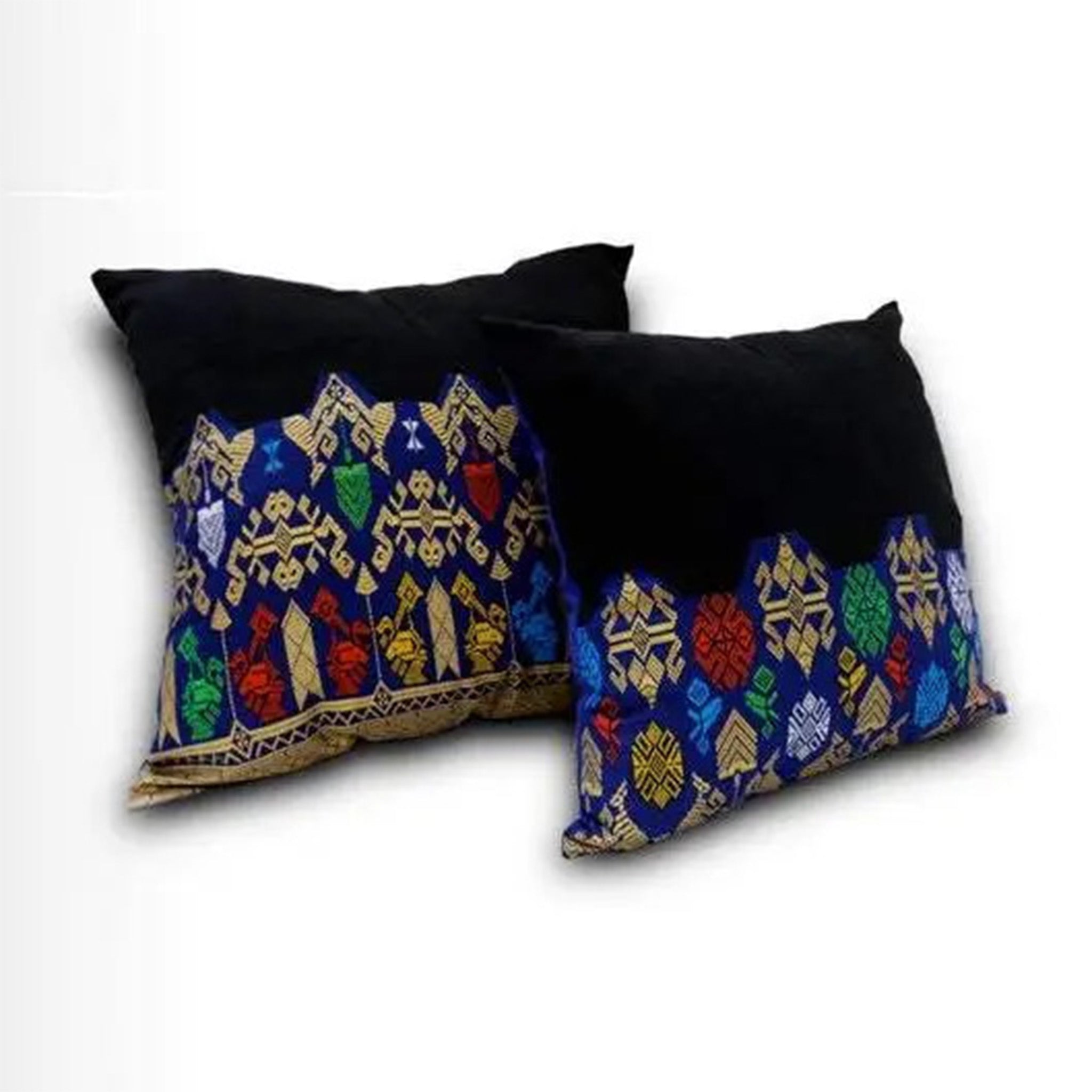 Material: * Cotton Size: * 20" x 20" Care: * Spot clean stain with mild detergent and water or dry clean Because of the handmade nature, each pillow cover is slightly different but using the same ikat fabric shown here. There maybe some slight variation on sizes stated above because of the handmade nature. Decorative Pillow, Throw Pillow, Pillow Cushion, Ikat Cushion, Ikat Pillow, Boho, Bohemian, Handmade Pillow, Handwoven Pillow, Home Decor, Christmas Gift, Woven, Holiday Pillow, blue Pillow, blue, indigo pillow, indigo, black pillow, black and blue, black and gold, gold pillow