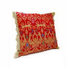 Batik, Ikat Pillow Cover, Red & Gold with Gold Fringe. Cover Only with No Insert. 20inches x 20inches