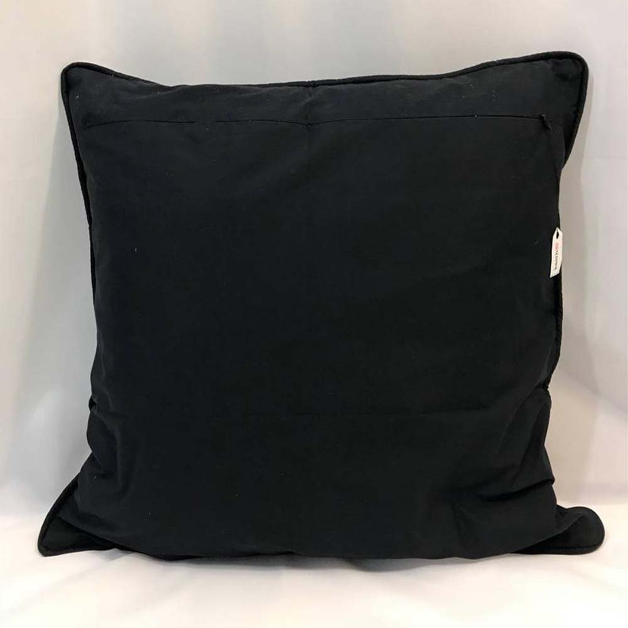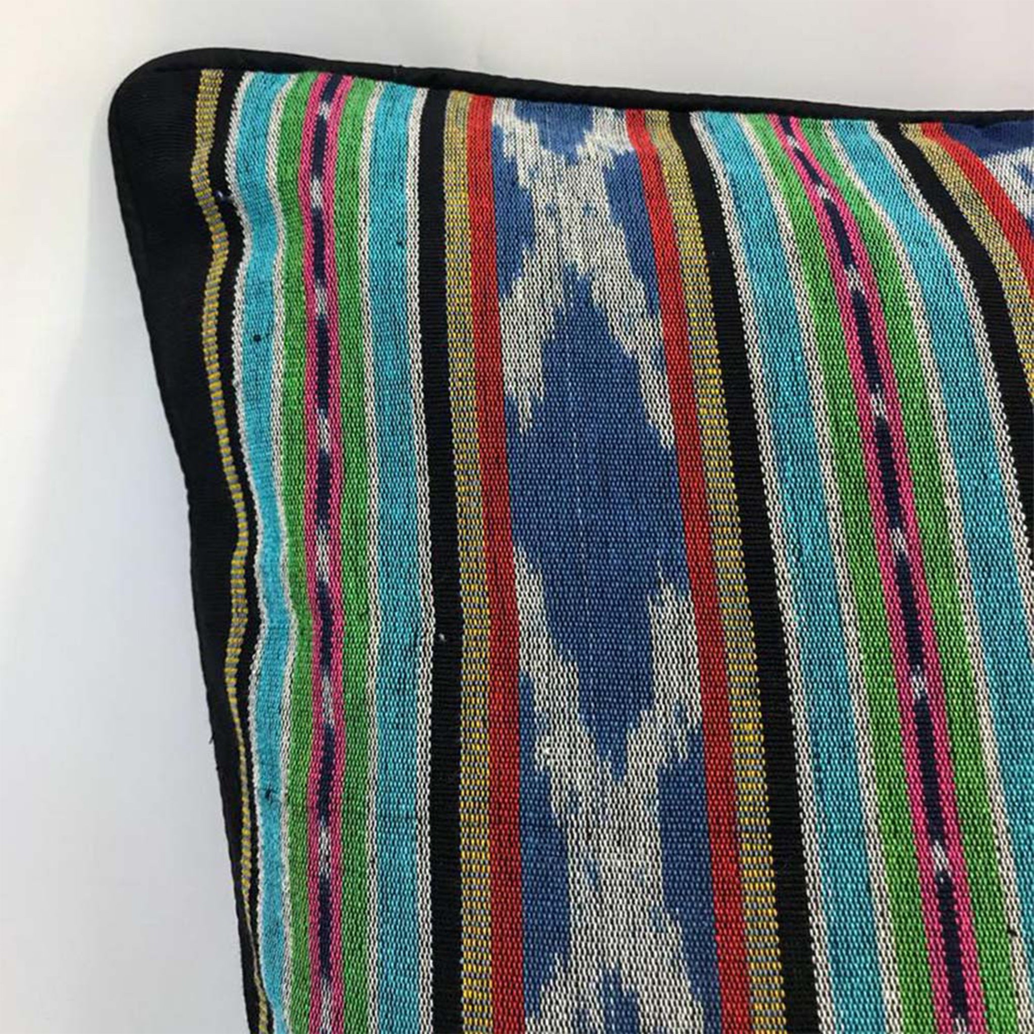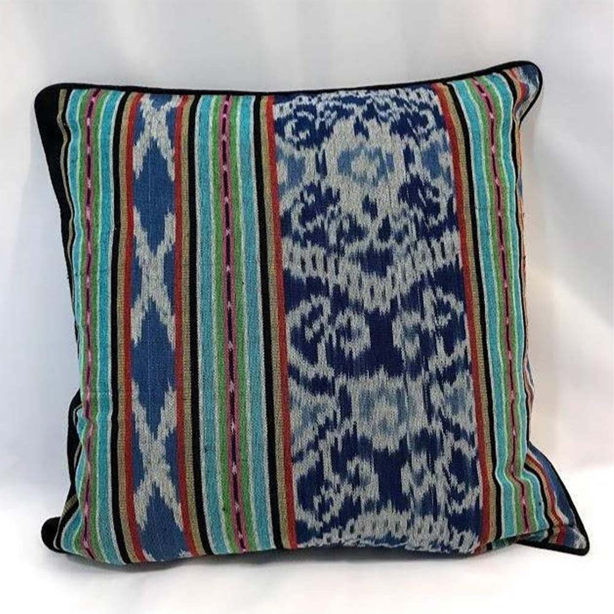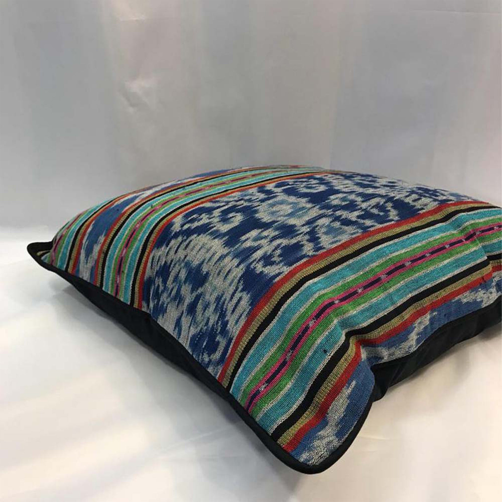 * The back of the pillow is a black cotton fabric to complement the front ikat pattern.