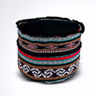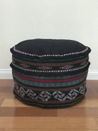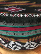 Round Ikat Pouf Ottoman, Black, Red and Green. Cover Only with No Insert.