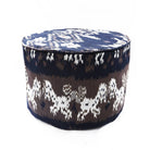 Round Ikat Pouf Ottoman, Brown. Cover Only with No Insert.
