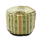Round Ikat Pouf Ottoman, Light Green. Cover Only with No Insert.