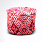 Round Ikat Pouf Ottoman, Orange and Red. Cover Only with No Insert.