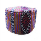 Round Ikat Pouf Ottoman, Purple. Cover Only with No Insert.