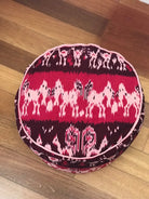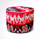 Round Ikat Pouf Ottoman, Red and Black. Cover Only with No Insert.