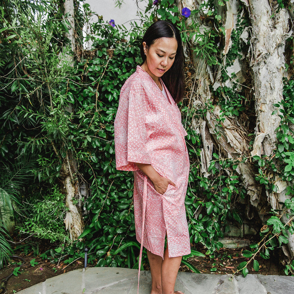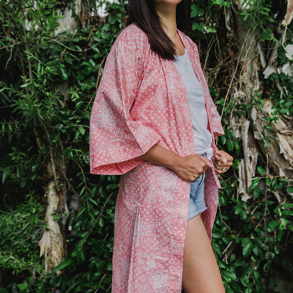 Each of our batik kimono robe is handcrafted using the traditional batik wax-resist technique by skilled Indonesian artisans. This process results in vibrant, intricate patterns that are truly one-of-a-kind. Take a look at our blog to see some photos and videos of our artisans creating our batik fabric.