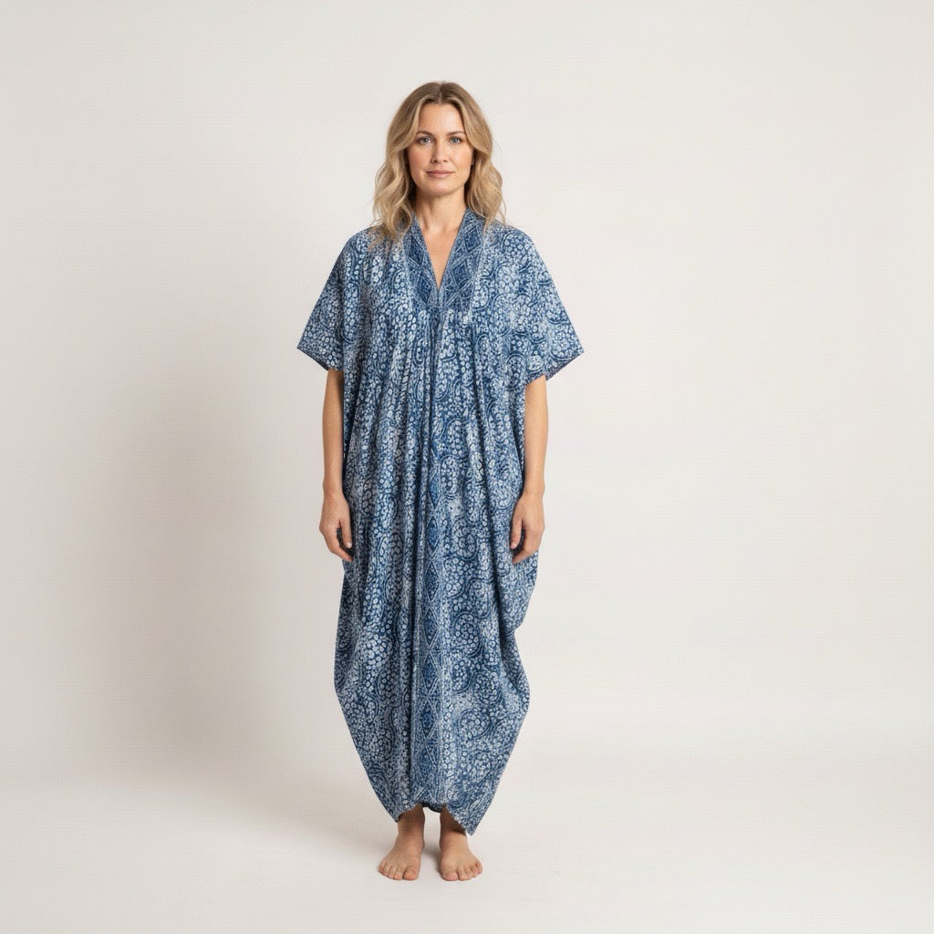Hand-dyed batik robes, and quilted kimono robe and handmade printed batik dresses. Handcrafted by our Indonesian artisans, designed in Manhattan Beach, California.