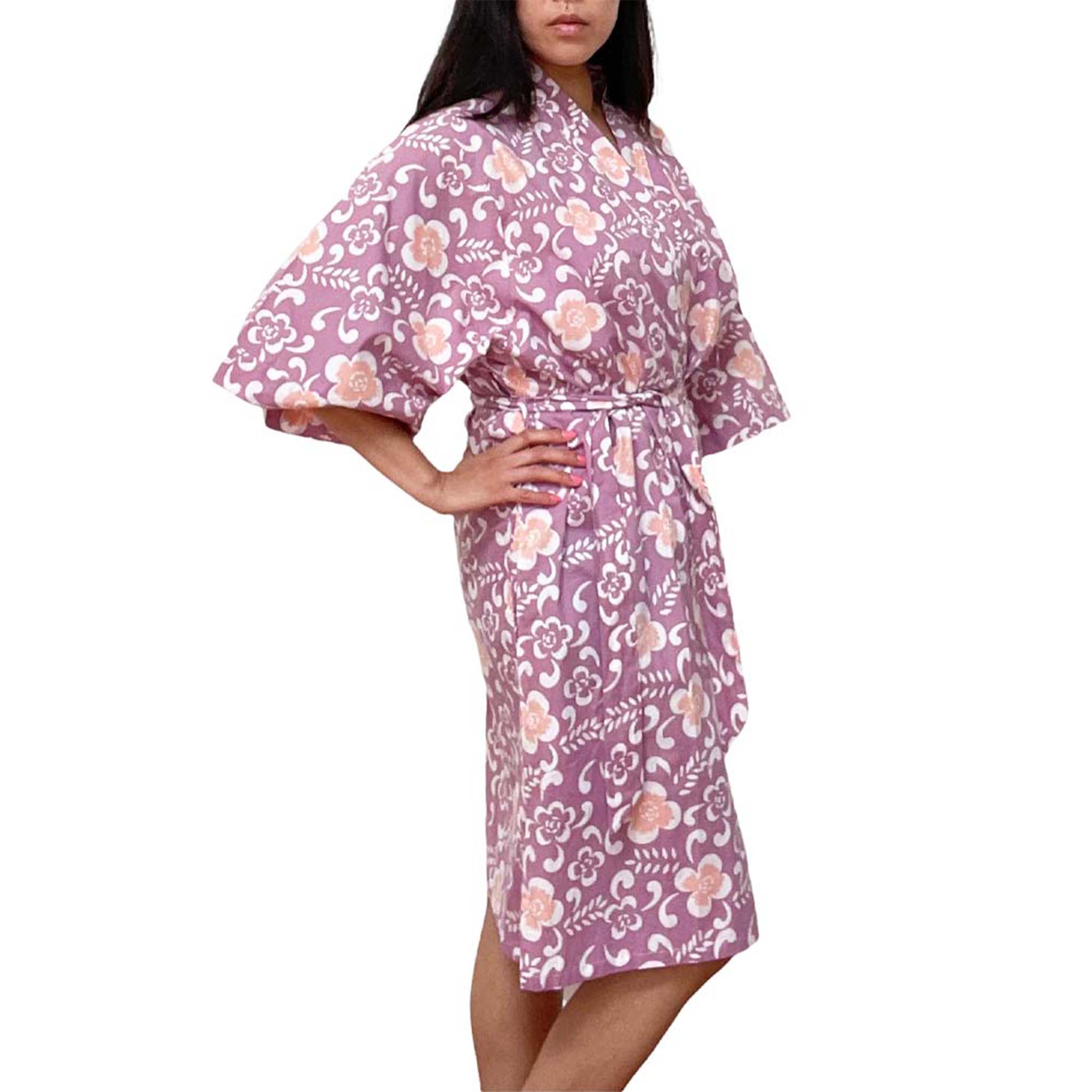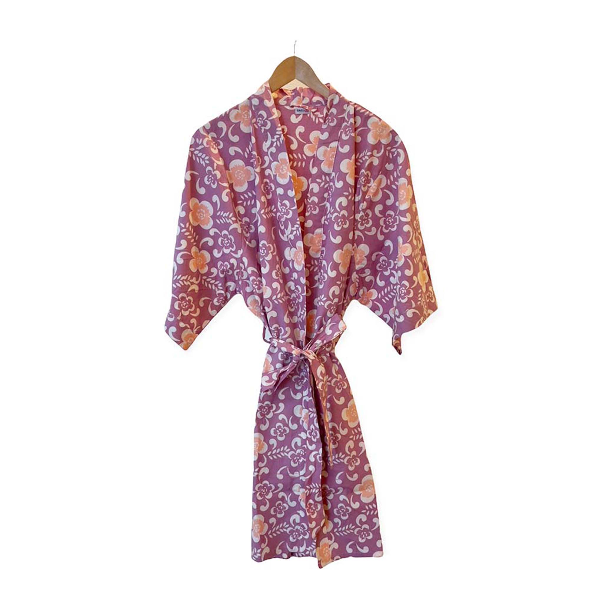 Handmade Batik Robe/ Kimono - Cotton - Plumeria