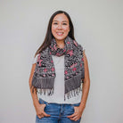 Handmade Batik Shawl, Wrap, Batik Fabric Cloth, Artisan Made, Gift for her, Woman Scarf, Dobby Cotton Polyester, Machine Washable, Scarves, Handmade Scarf, Hand block Scarf, Handstamp Scarf, Cotton Polyester Batik Fabric, Batik Indonesia, Black Red Batik Scarf, Hostess Gift, Gift Idea, Batik Modern