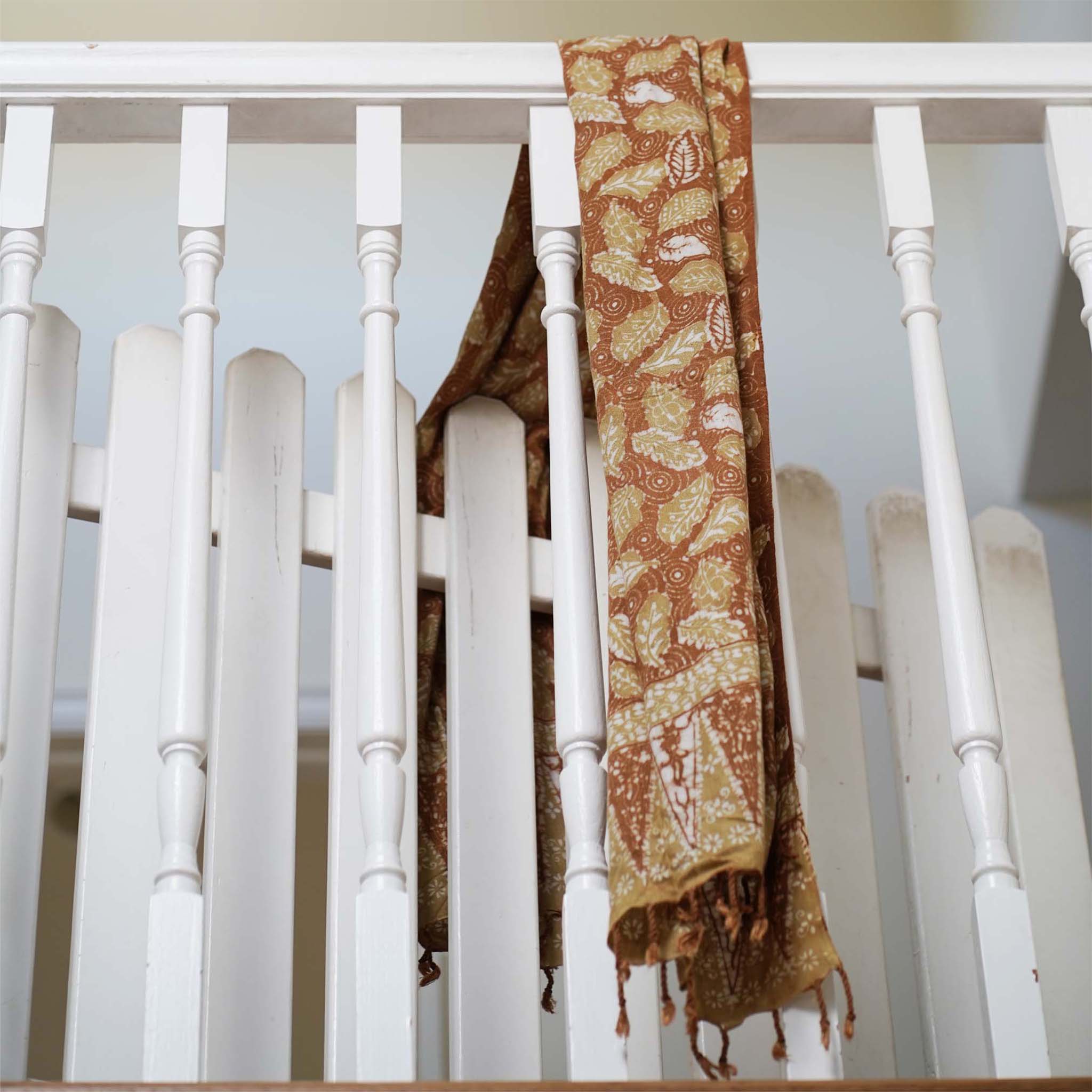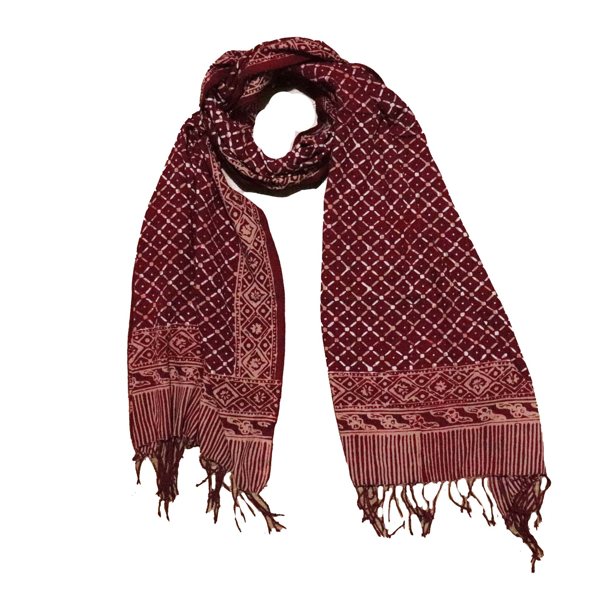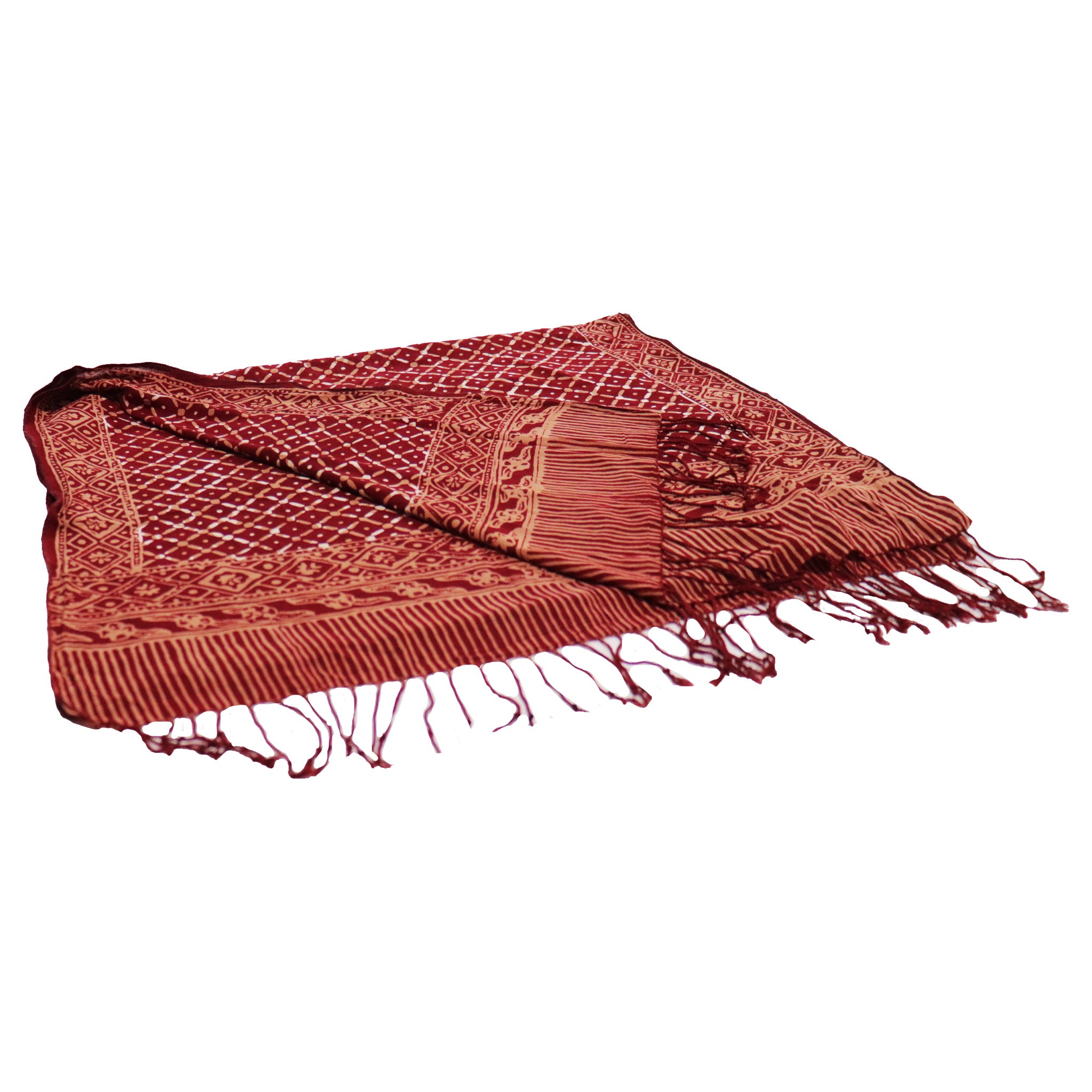 To maintain the vibrancy and quality of your batik scarf, machine-wash it in cold water with mild detergent. Avoid bleach or harsh chemicals, and air-dry it away from direct sunlight.