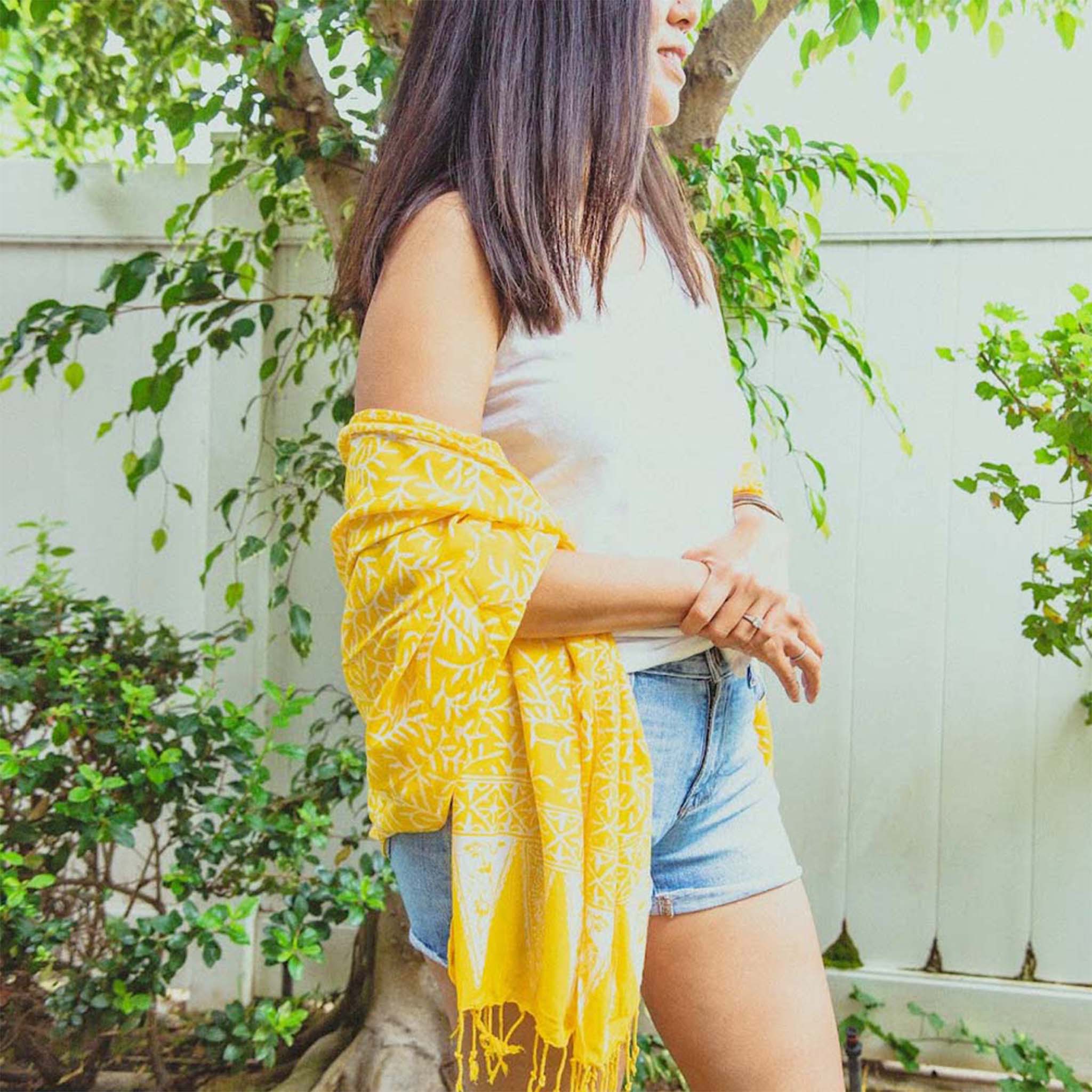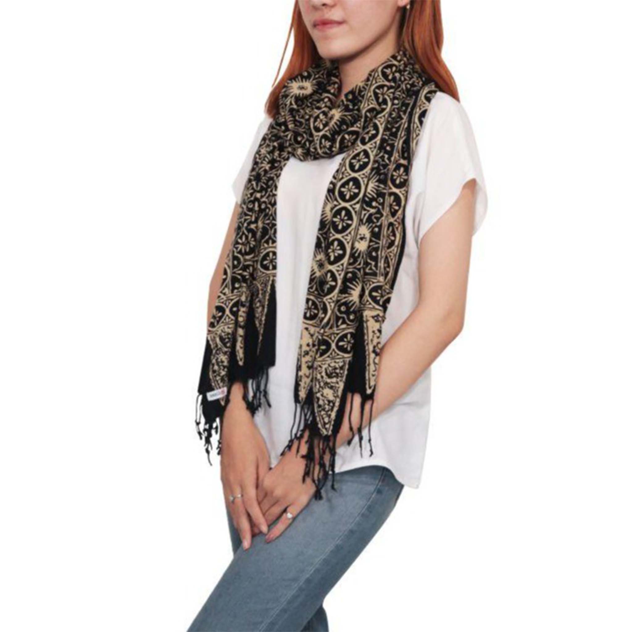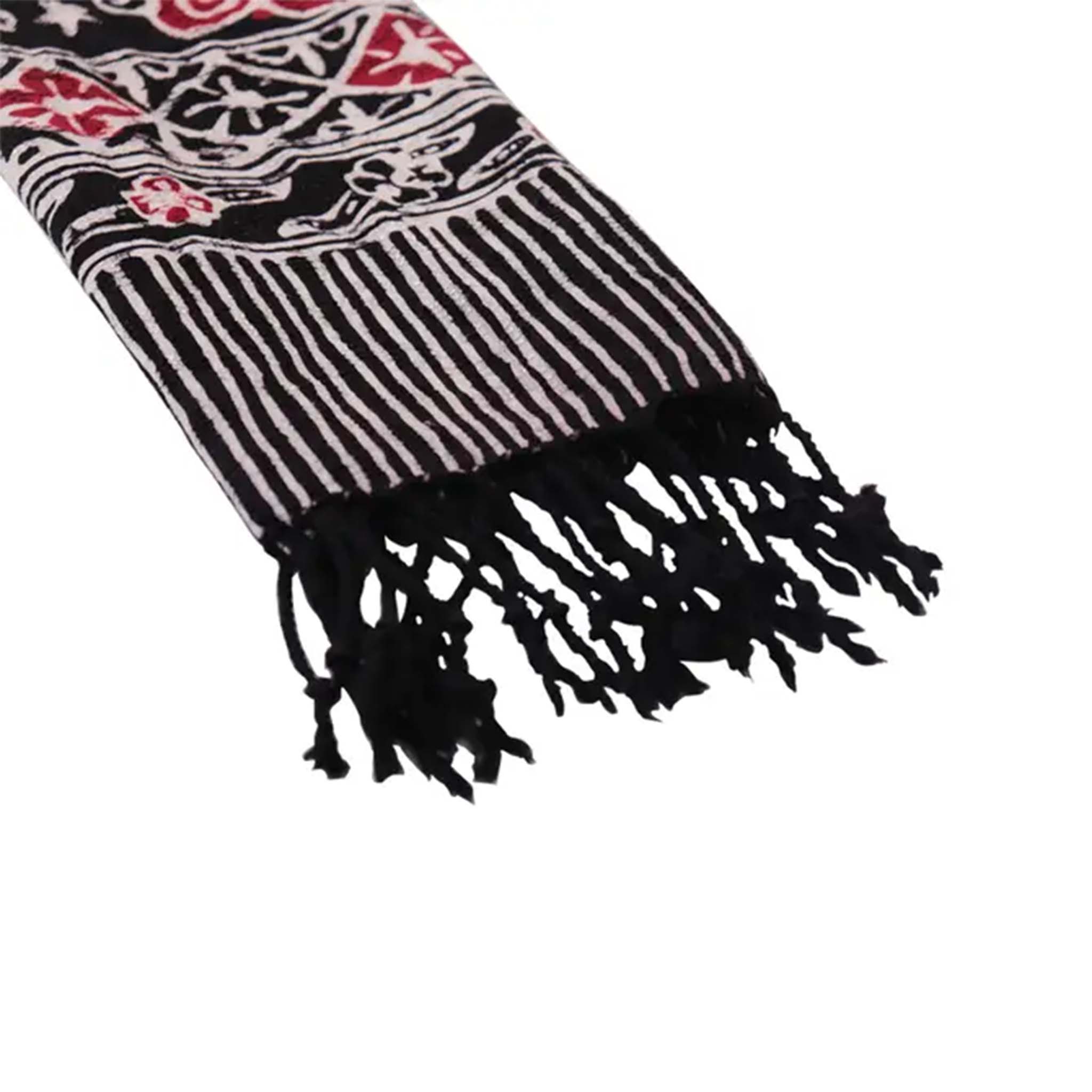 To maintain the vibrancy and quality of your batik scarf, machine-wash it in cold water with mild detergent. Avoid bleach or harsh chemicals, and air-dry it away from direct sunlight.