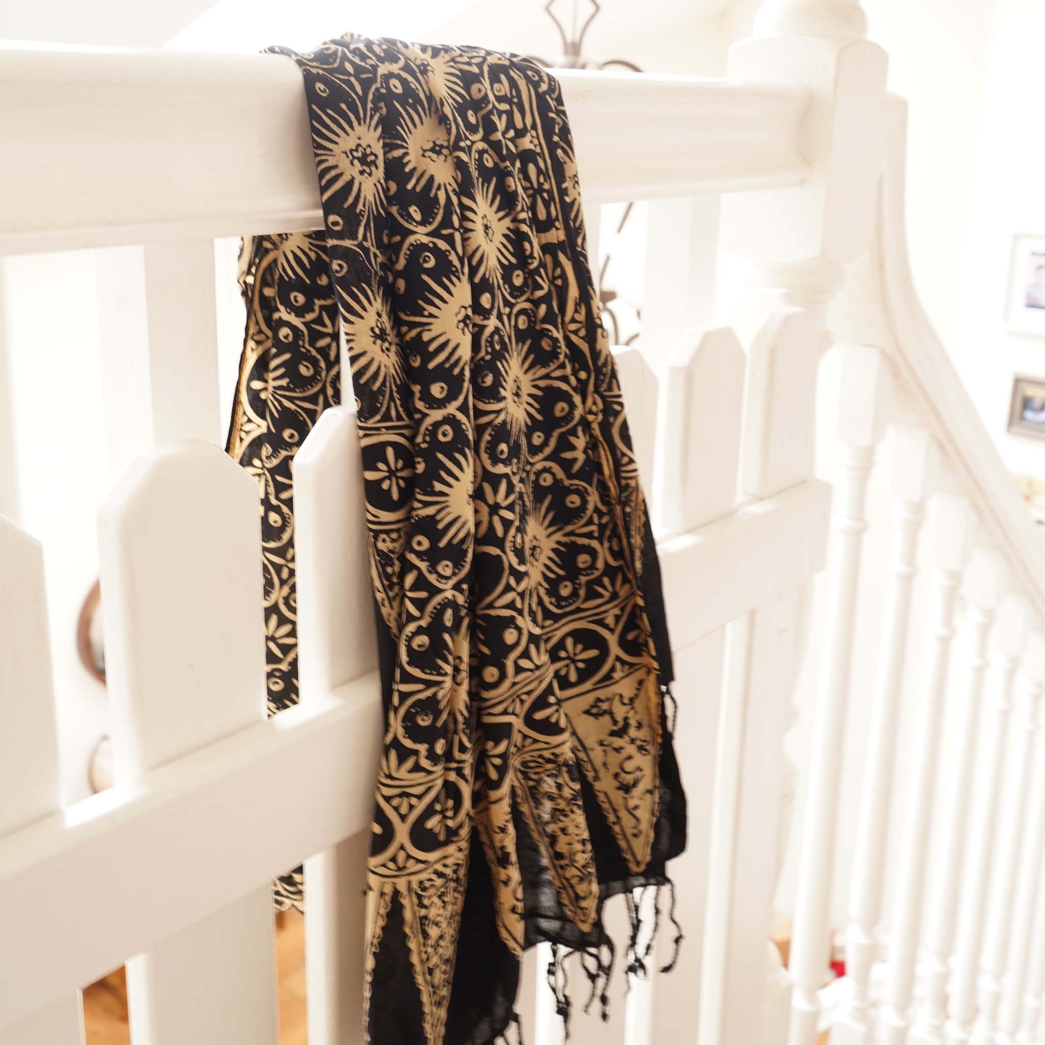 Hand-dyed batik wax & resist scarf. Soft 100% cotton, lightweight scarf and cover wrap.