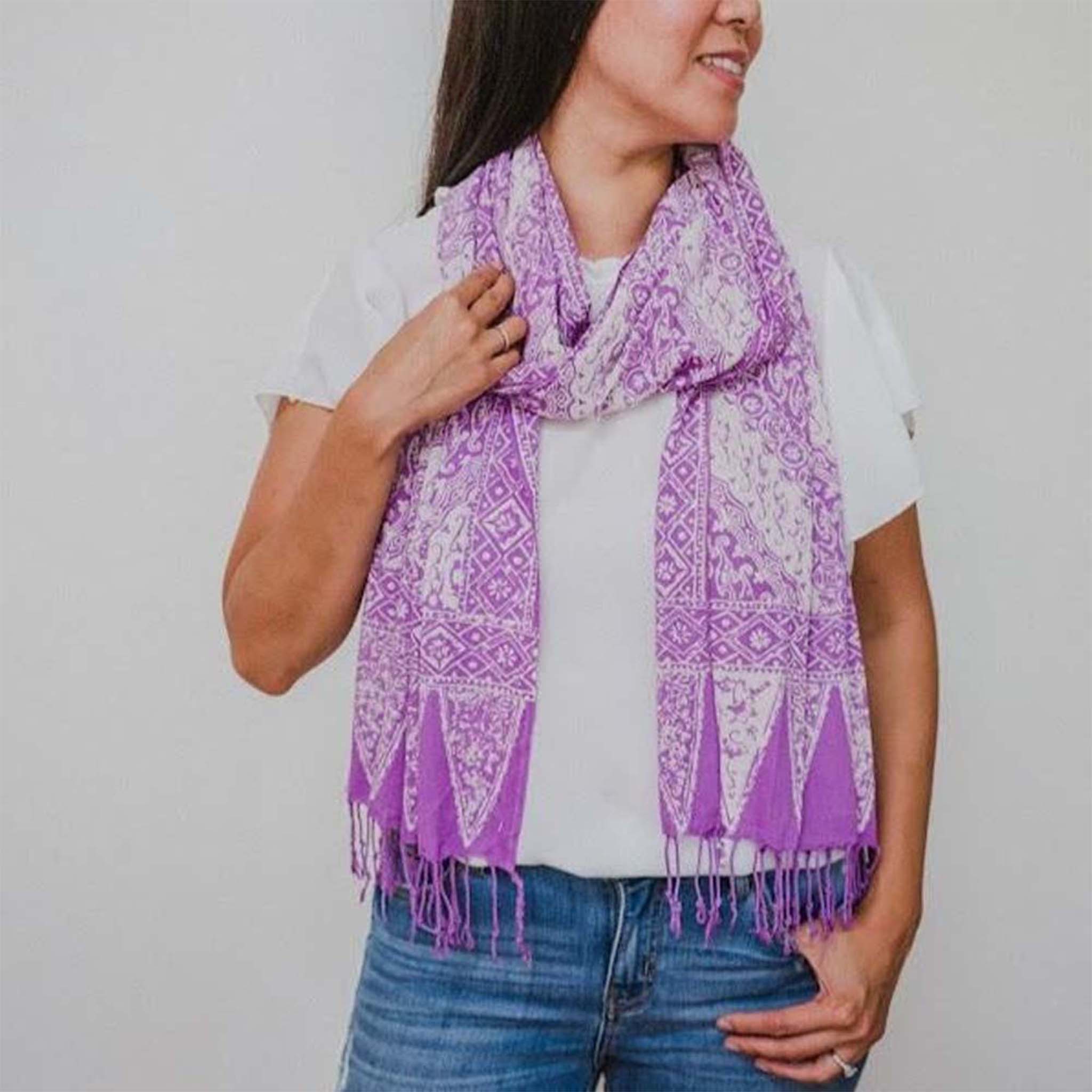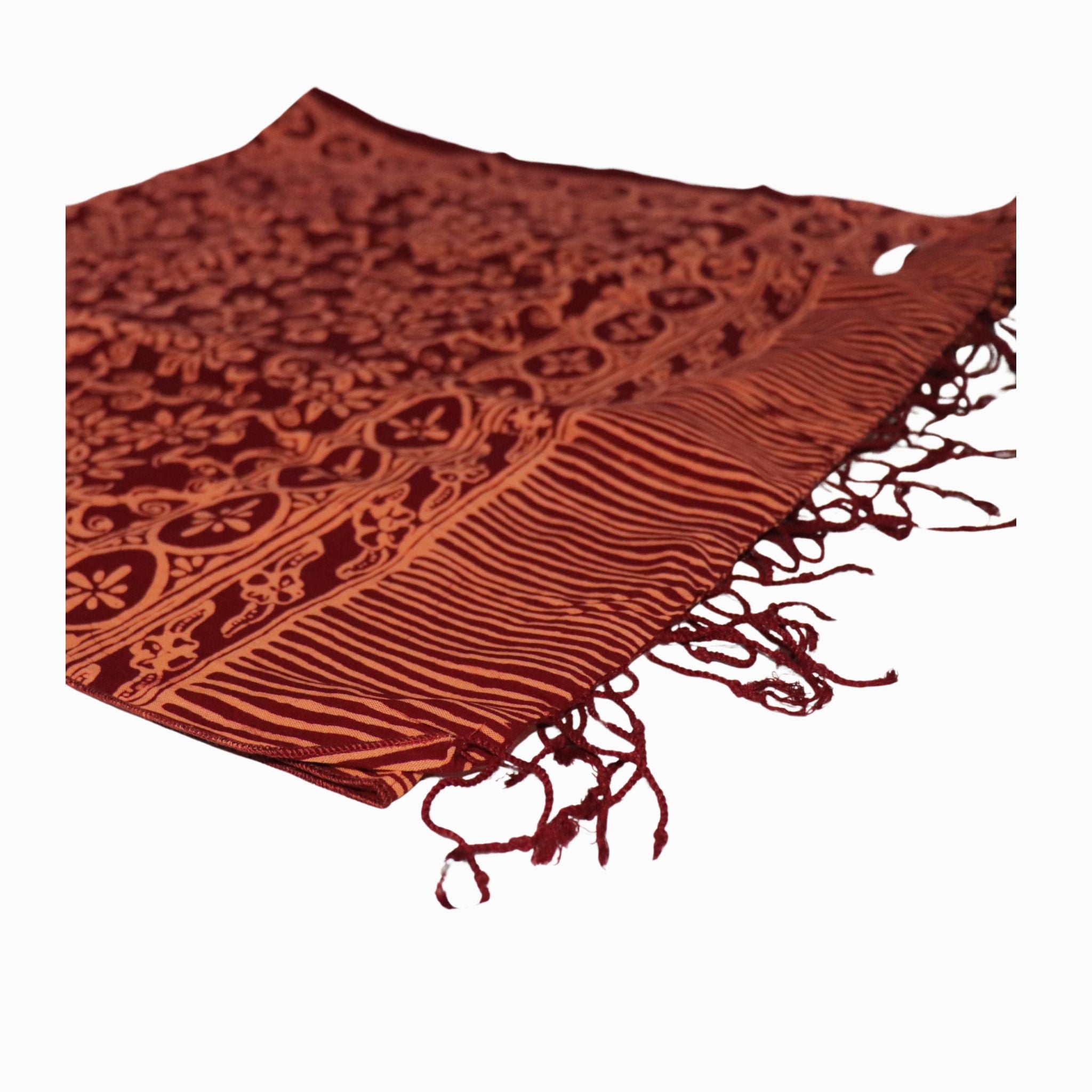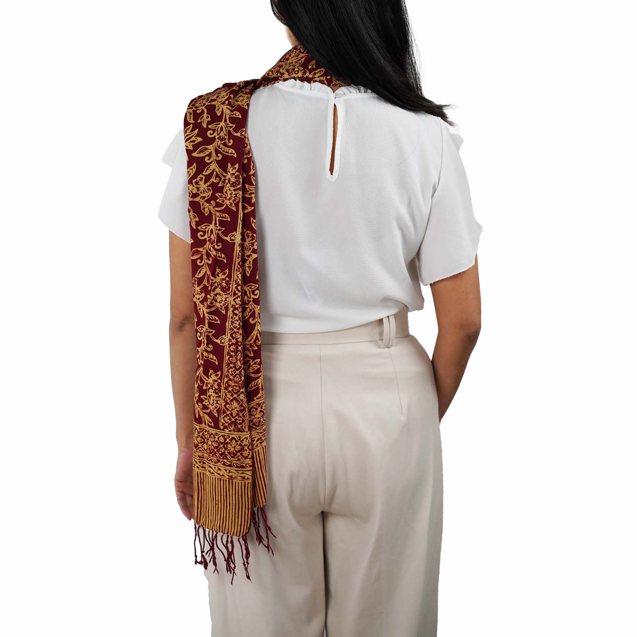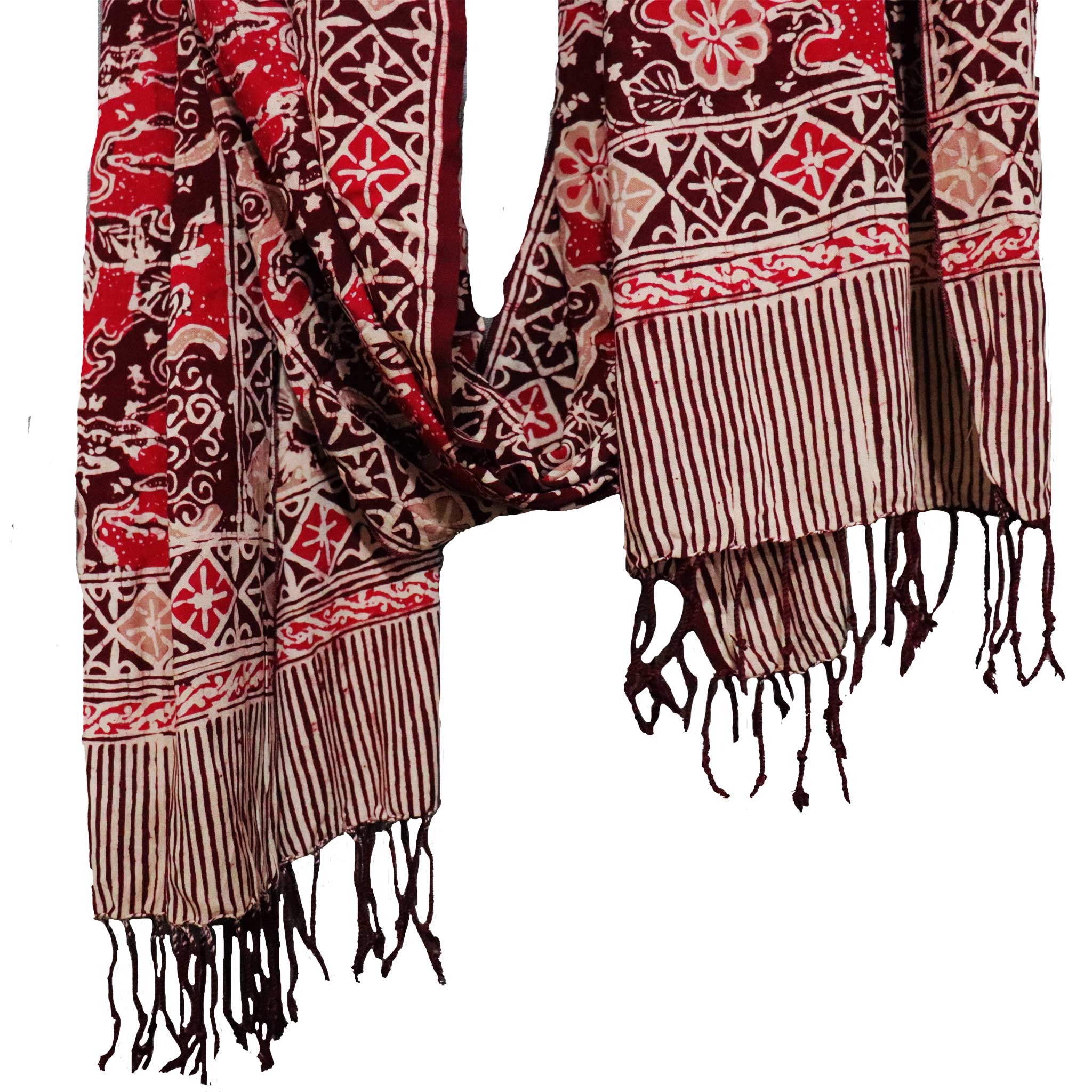 To maintain the vibrancy and quality of your batik scarf, machine-wash it in cold water with mild detergent. Avoid bleach or harsh chemicals, and air-dry it away from direct sunlight.