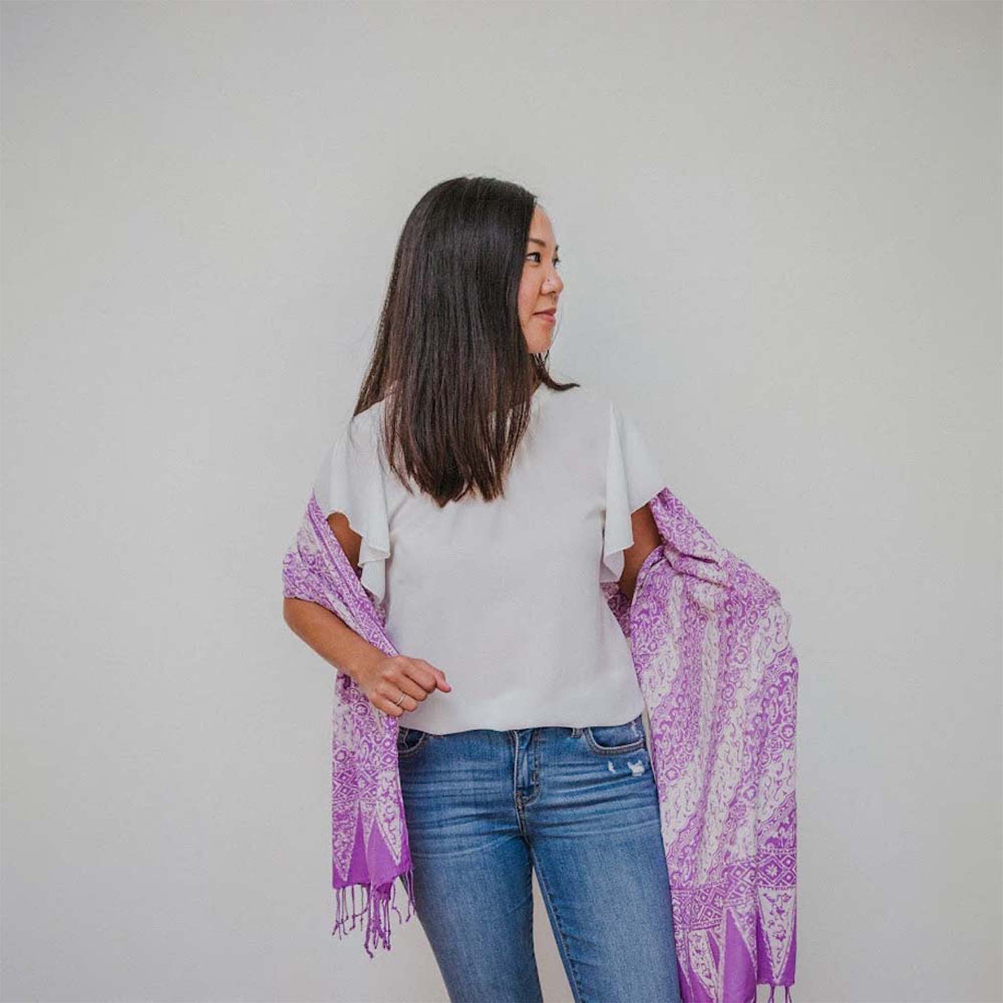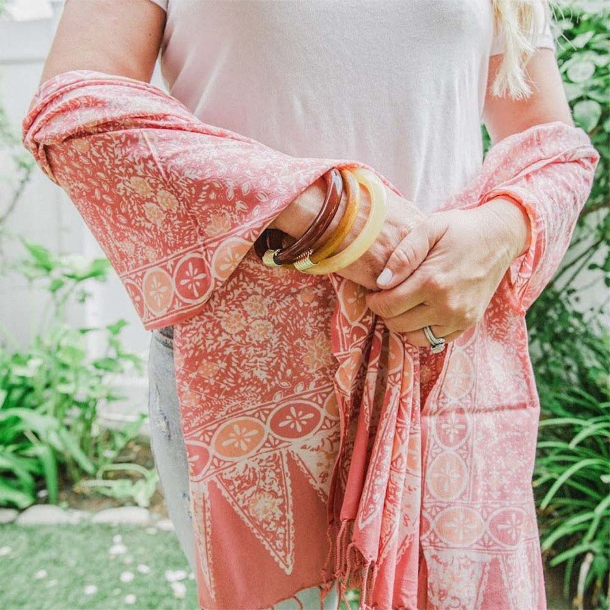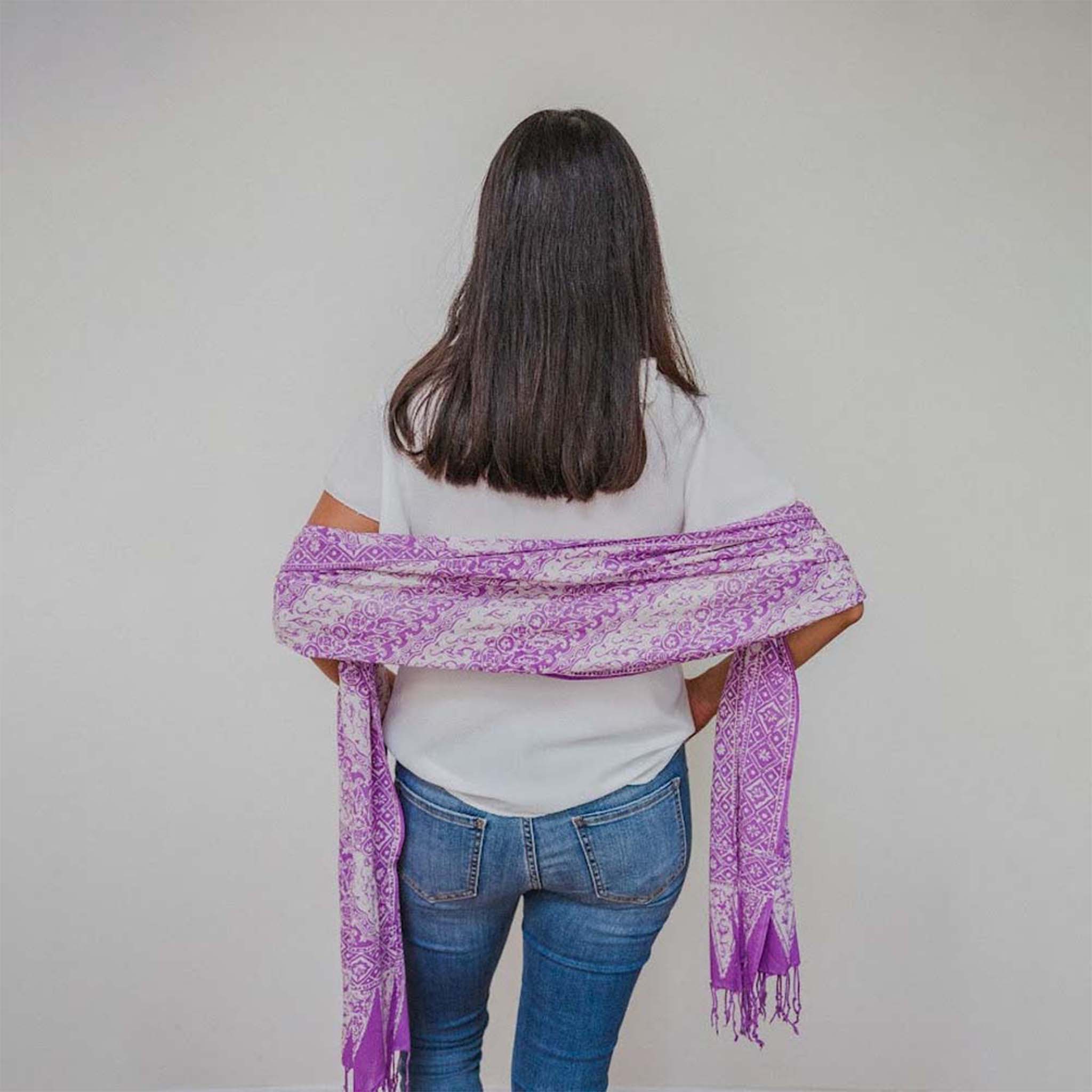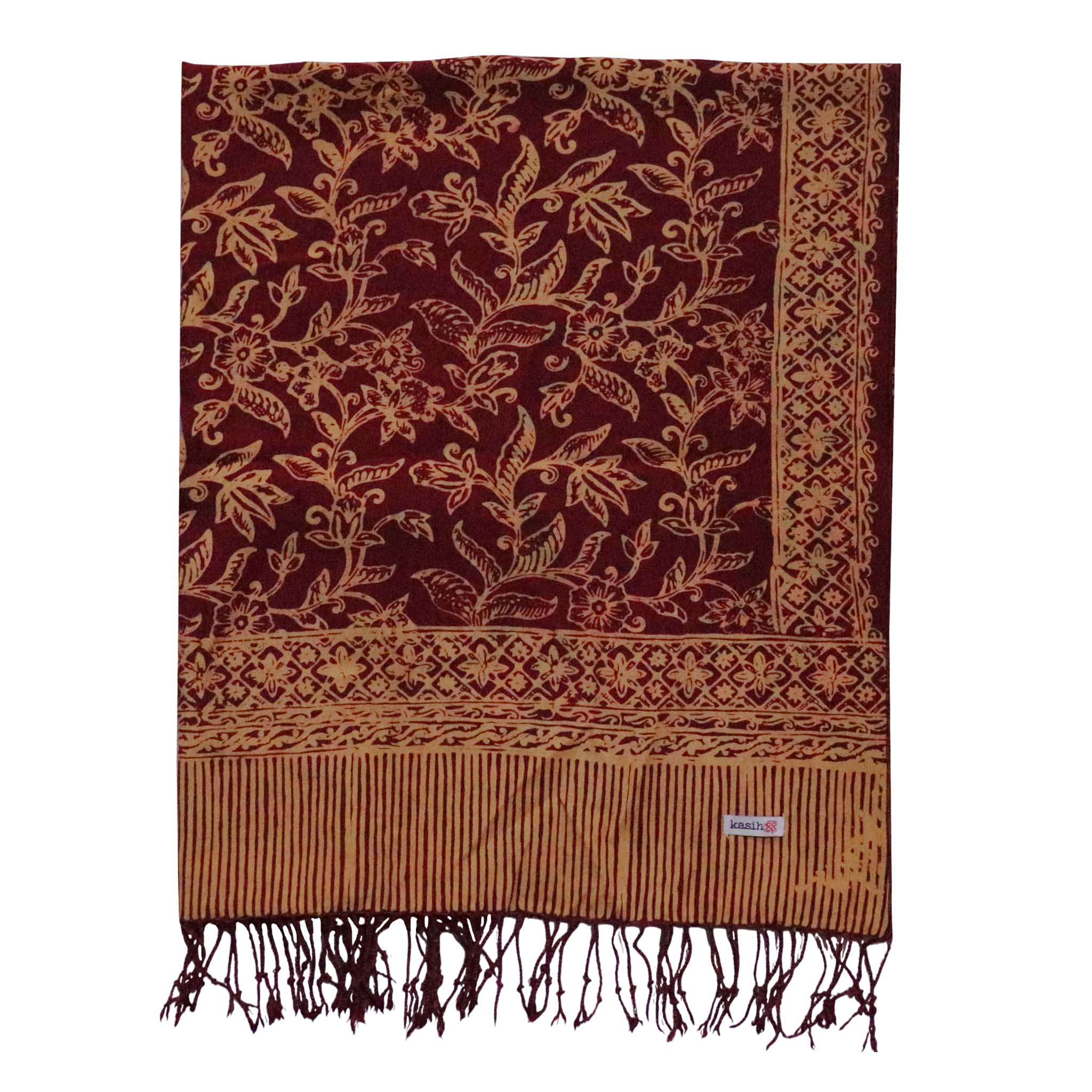 To maintain the vibrancy and quality of your batik scarf, machine-wash it in cold water with mild detergent. Avoid bleach or harsh chemicals, and air-dry it away from direct sunlight.