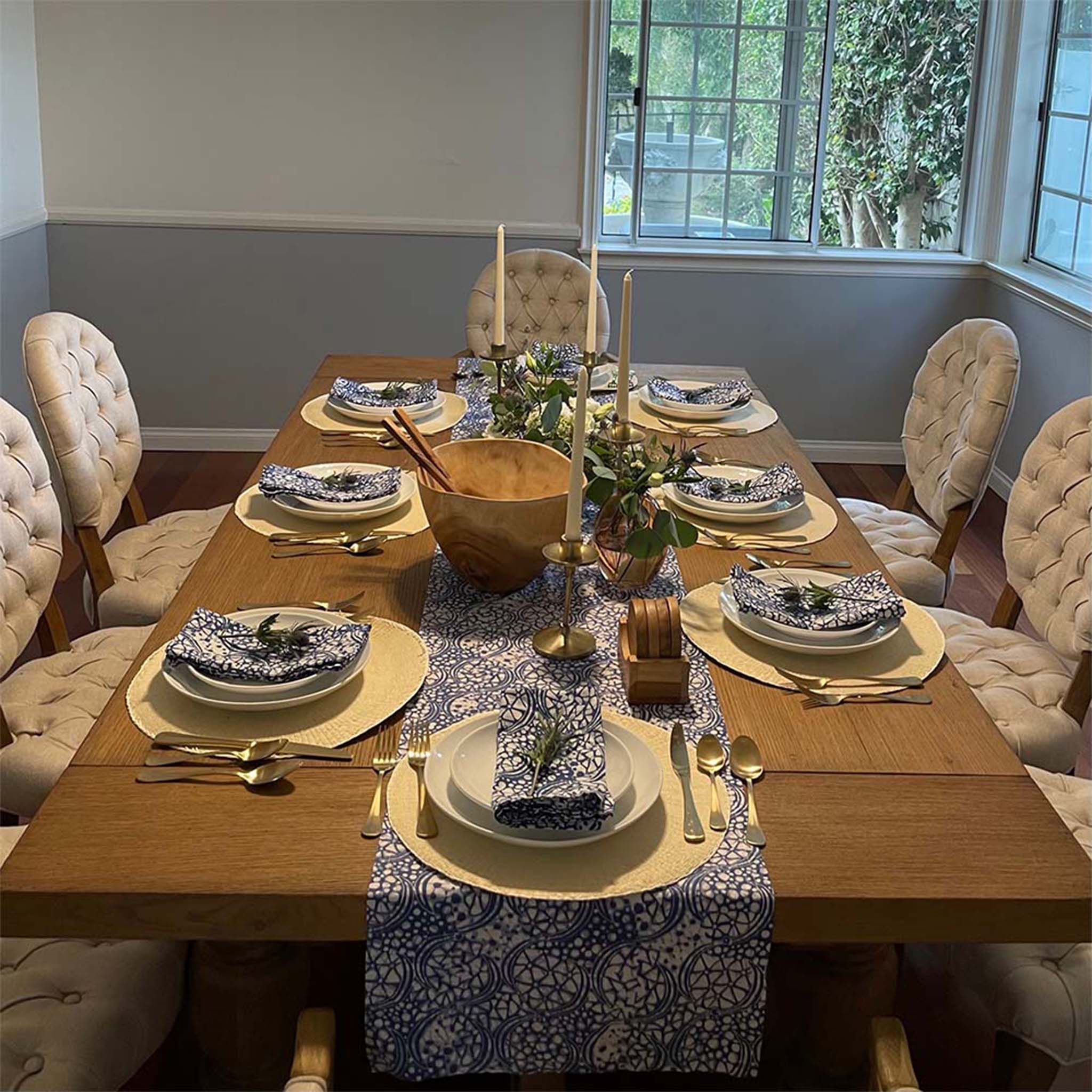 batik table linen, batik table cloth, batik tablescape, modern batik, modern batik table runner, modern batik table runner handmade, batik table cloth, tablerunner, tablecloth, batik tablesetting , handpainted batik fabric, washable, reusable batik napkin, boho tablescape, bohemian tablesetting, blue cotton batik fabric, handblock print, hand block print, handstamped batik, batik cap, copper block batik print, ecofriendly gift, ecofriendly napkin, sustainable gift, fair trade gift, artisan made, hostess gift, hostess with the mosess gift idea, house warming gift, welcome gifts, handmade runner, quilted batik runner, batik linen, batik indonesia, blue indigo runner, blue indigo linen