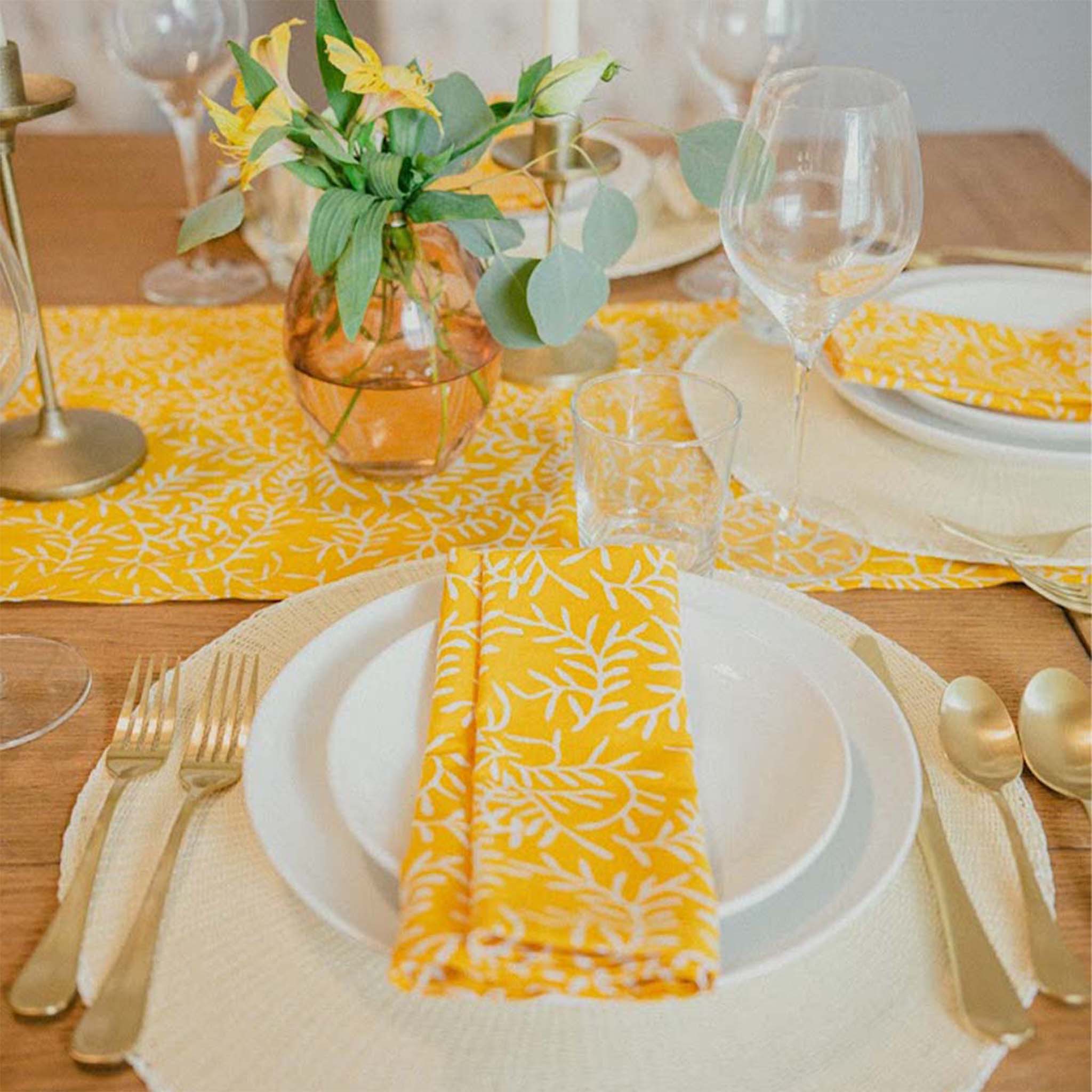 Batik Table Runner Yellow Twig, Hand Dyed, 100% Cotton