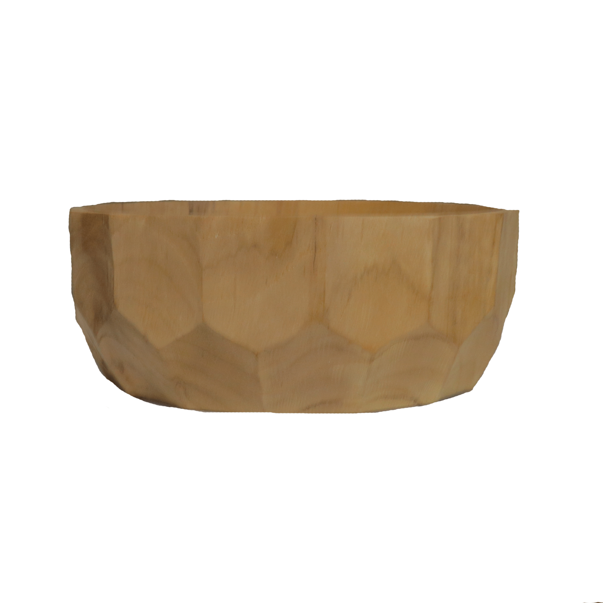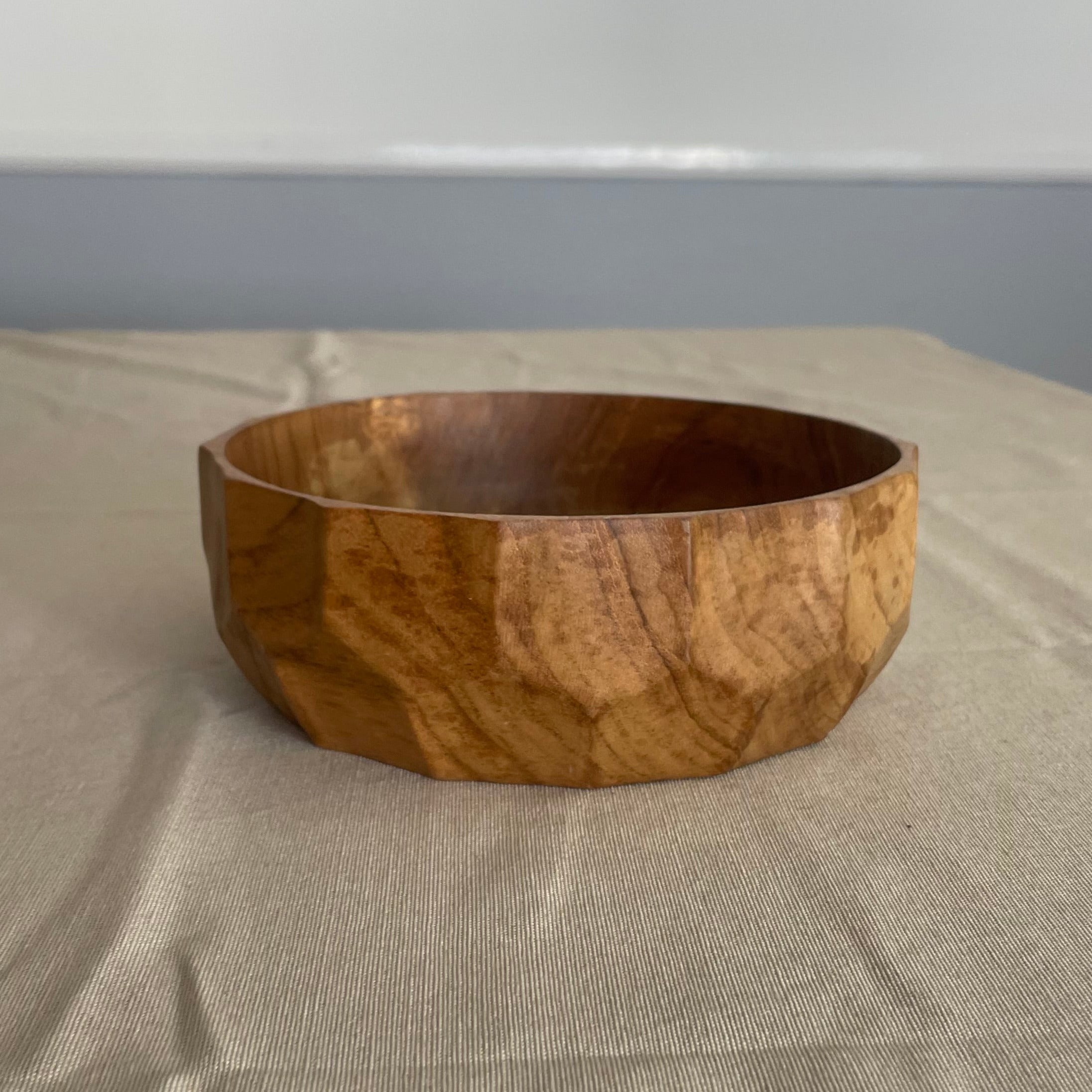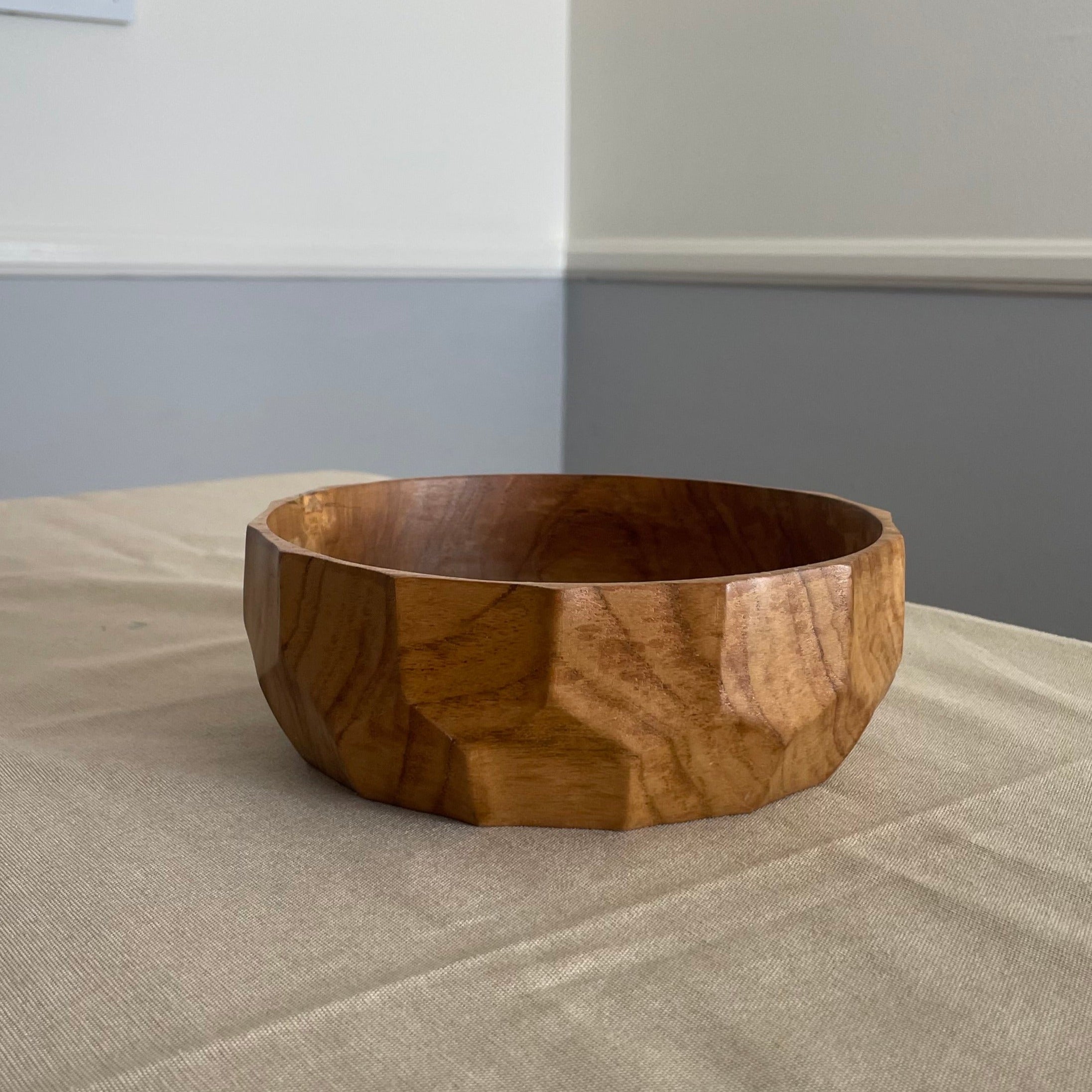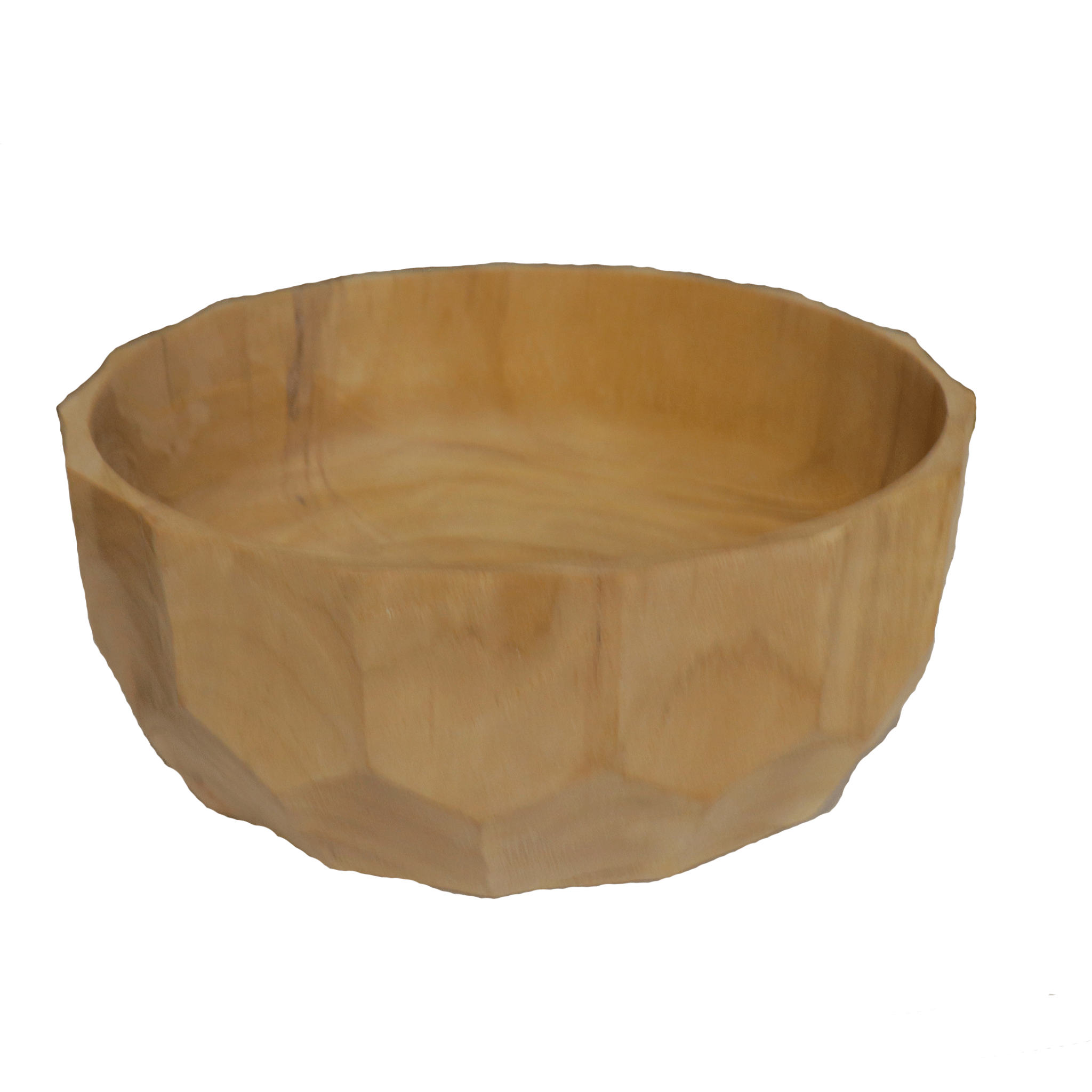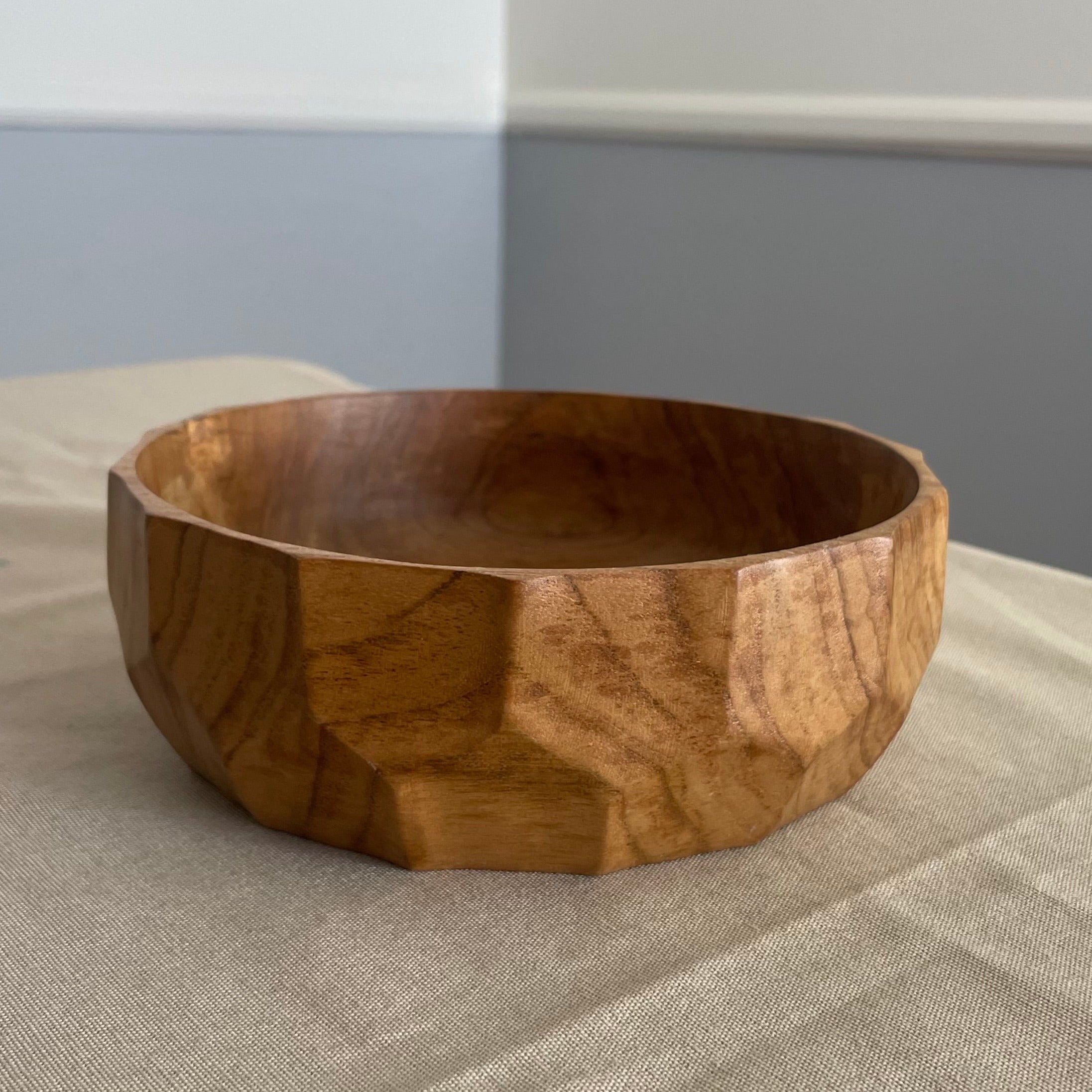 Suar Wood Small Bowl with Caving, Hand Turned by Indonesian Artisans