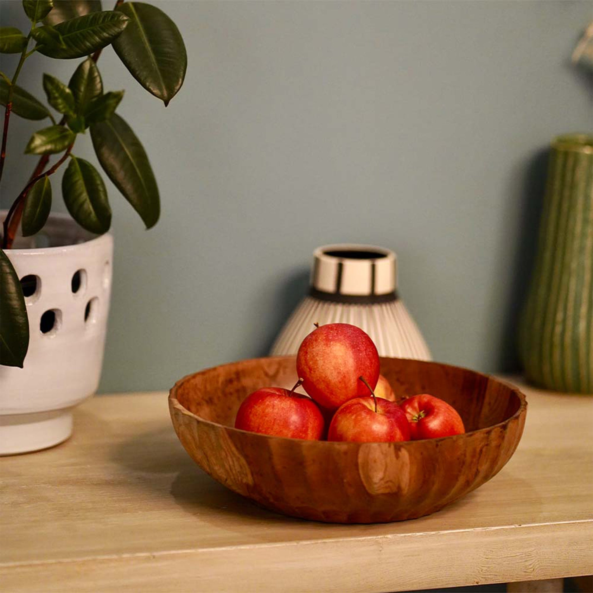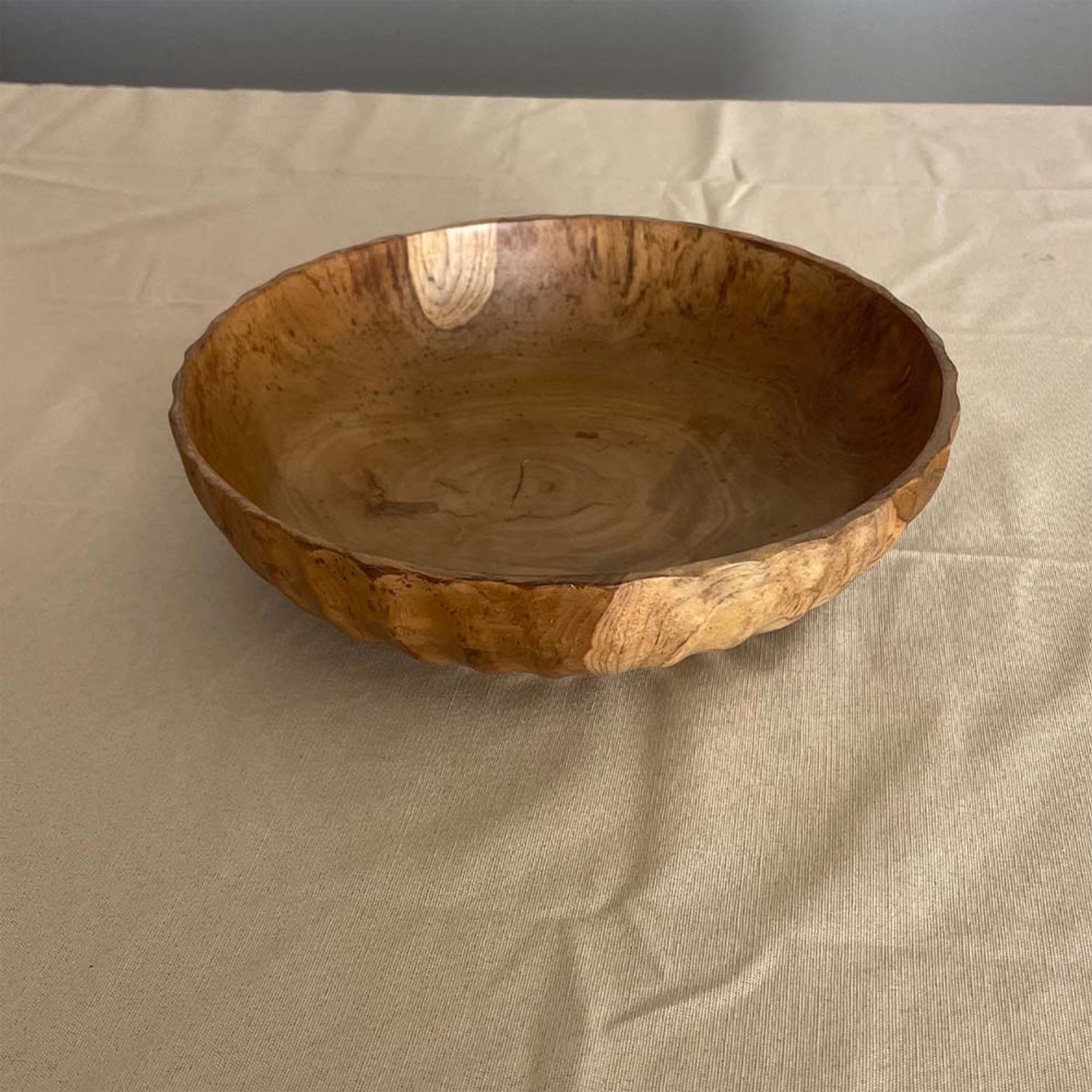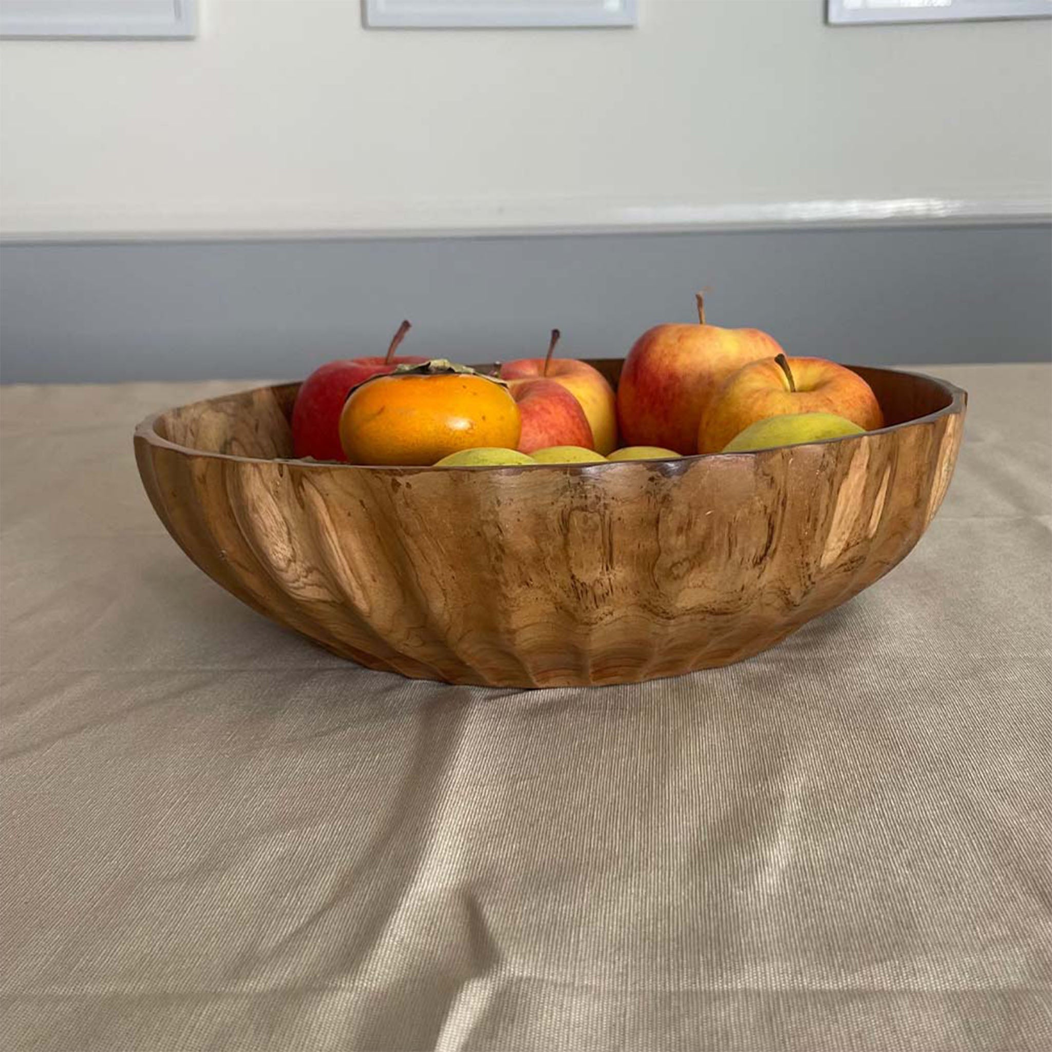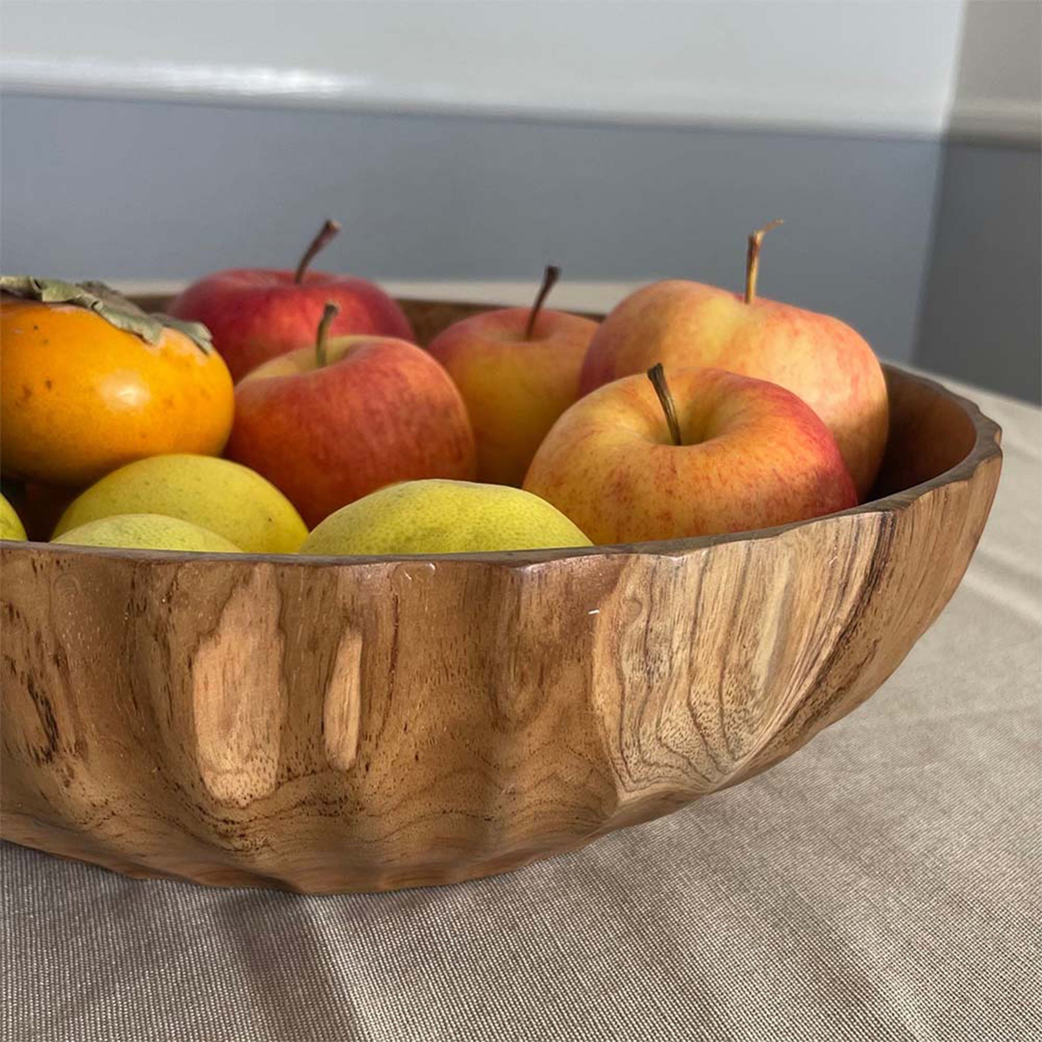 Medium Suar Wood Fruit Bowl, Handcarved in Indonesia, Flat Wooden Bowl
