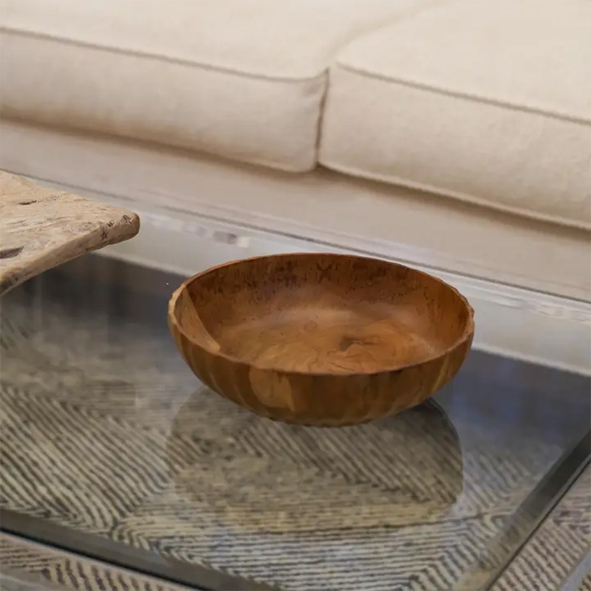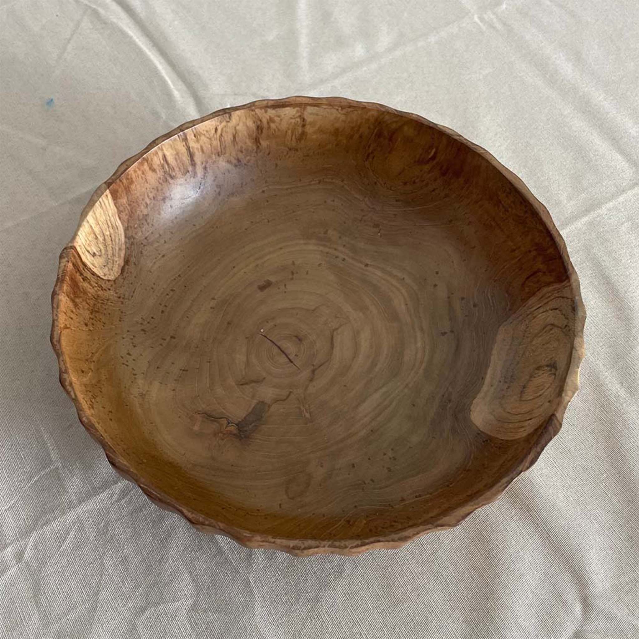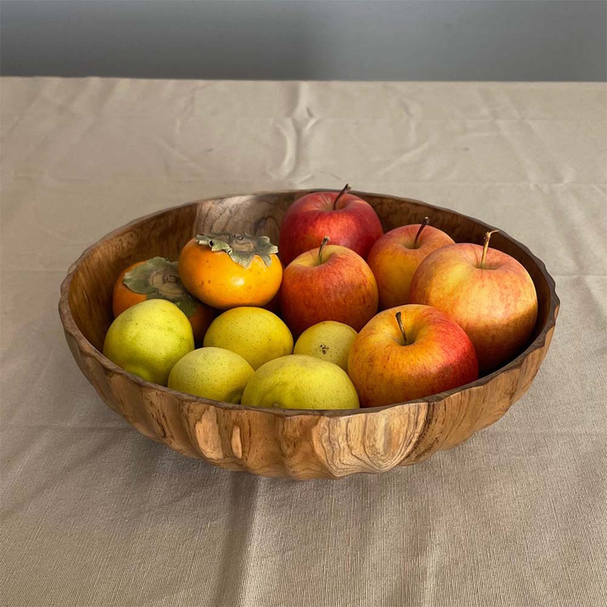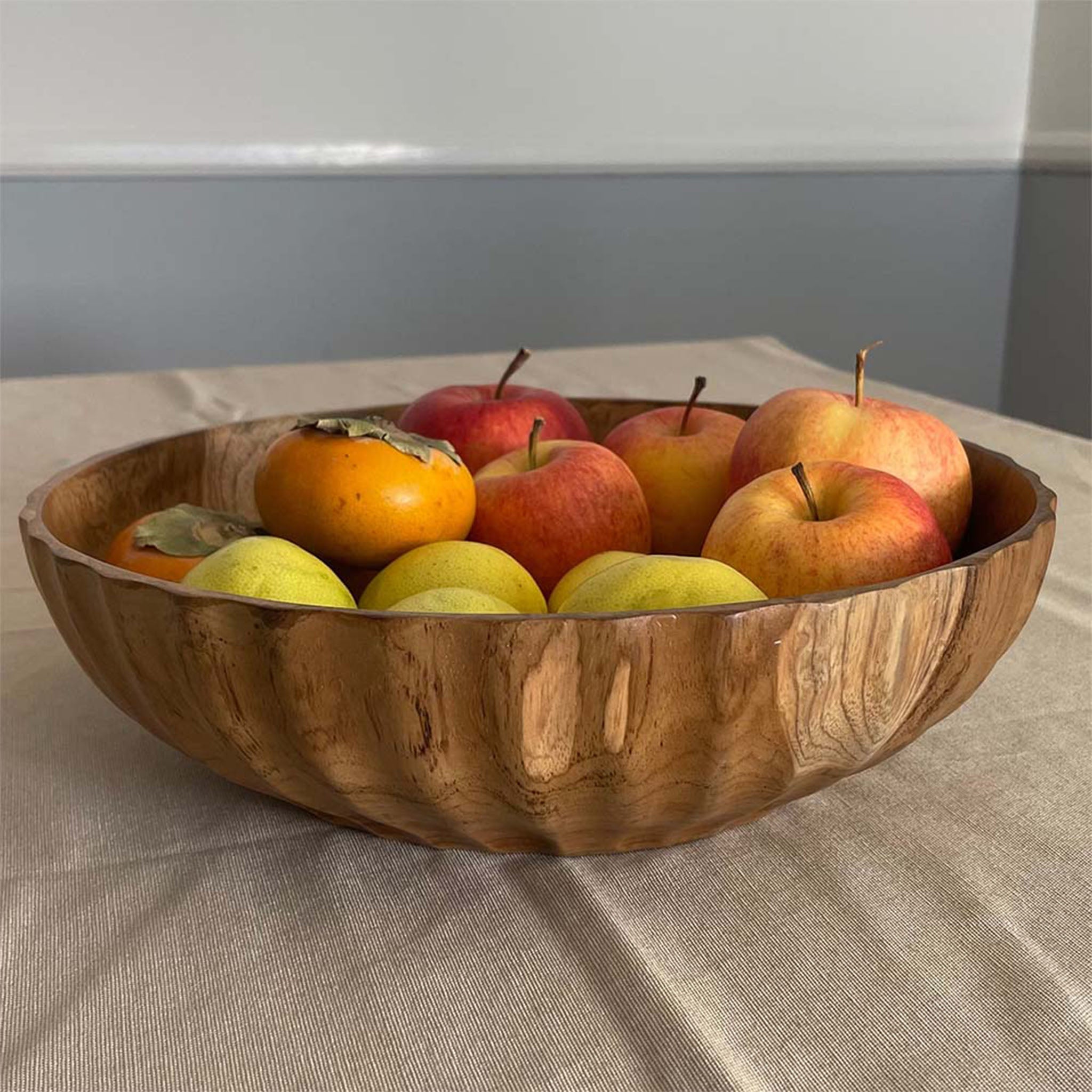 Medium Suar Wood Fruit Bowl, Handcarved in Indonesia, Flat Wooden Bowl