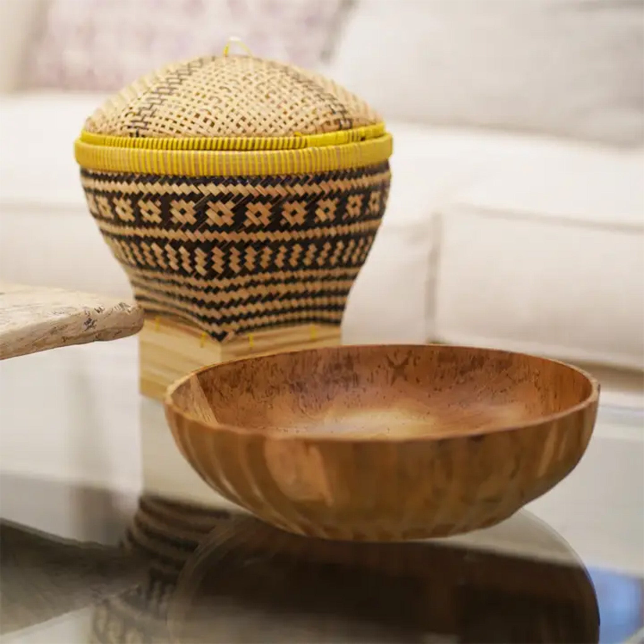 - The wood is first kiln dried to reduce the moisture content of wood before its use. The artisans then handmade the wood to end products by shaping it to form the salad bowl. The bowl is then finished and polished with beeswax to protect the woods. This treatment is food safe.