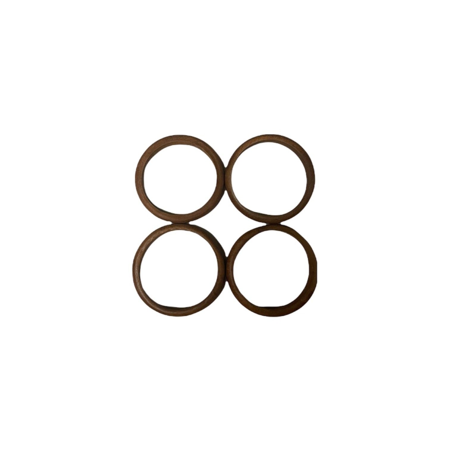 This is a set of four teak wood napkin rings, handmade by artisans.