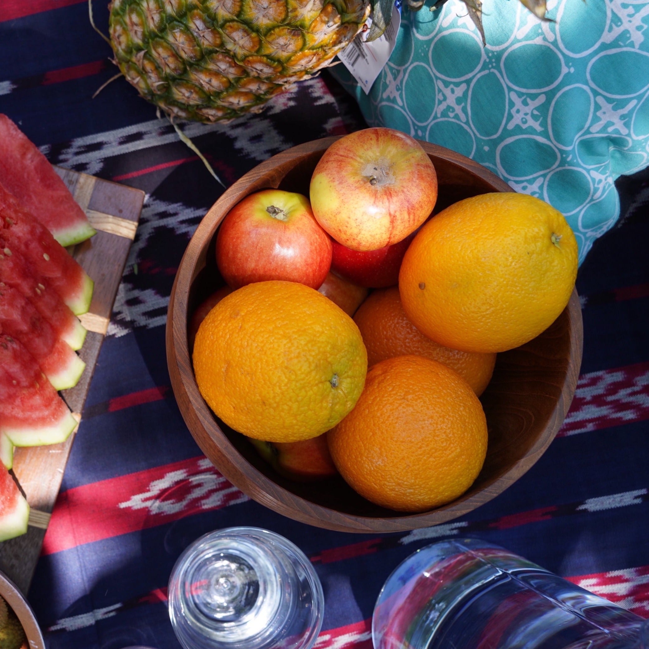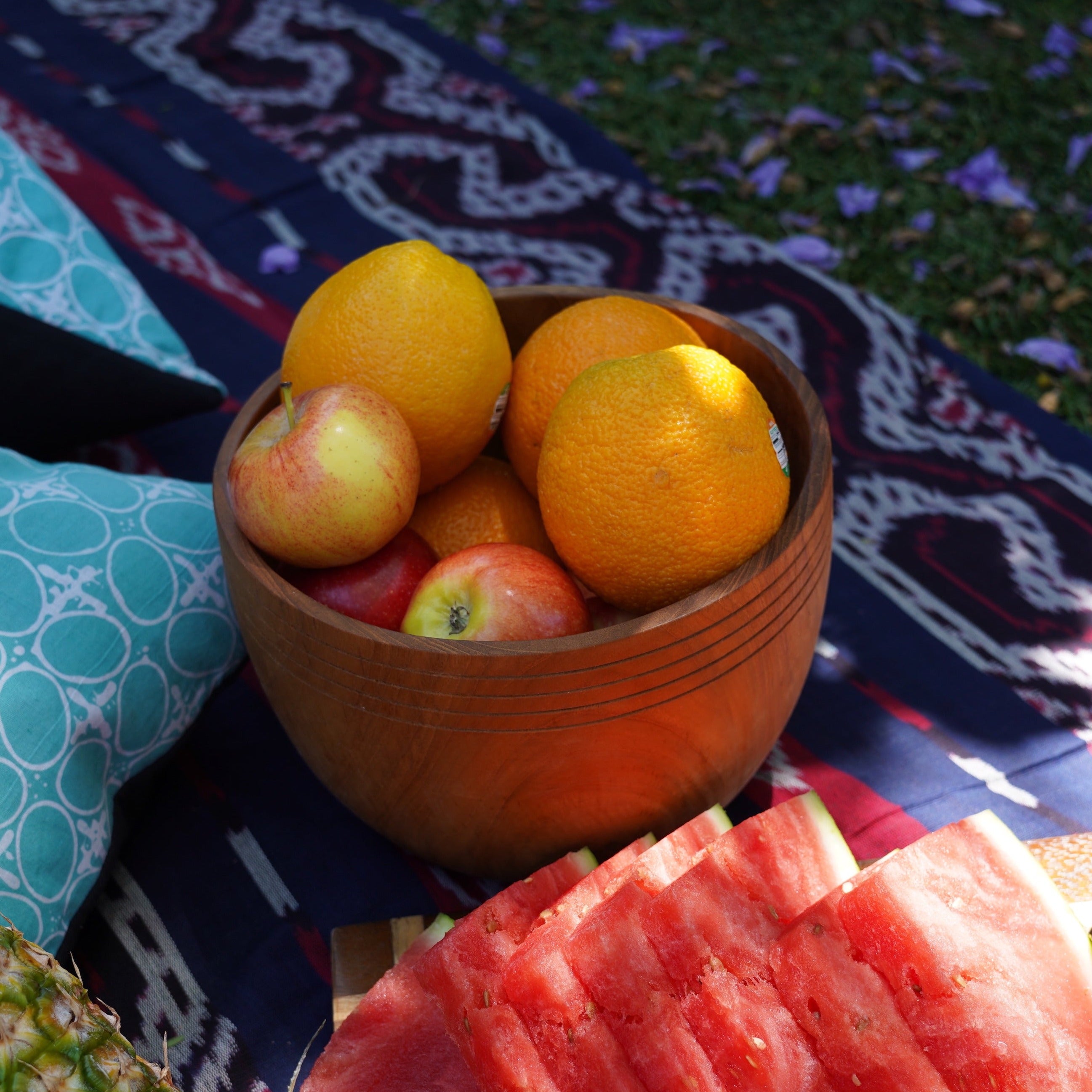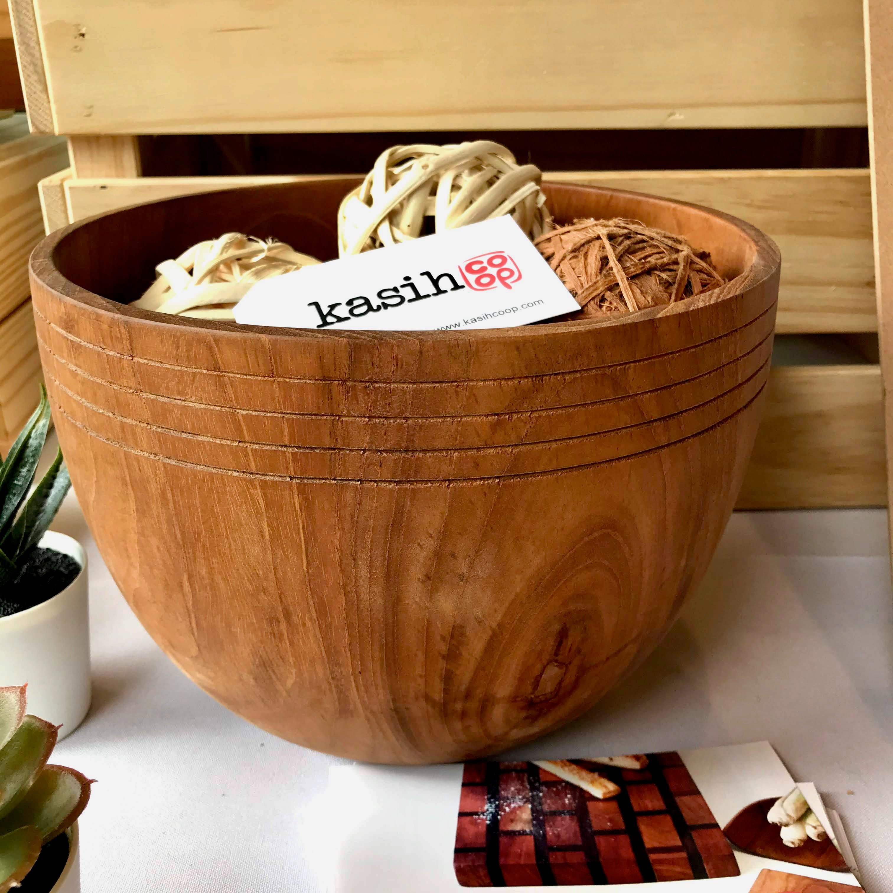 Handmade teak wooden bowl made by artisans in Indonesia sourced from Indonesian government certified lumber producer.