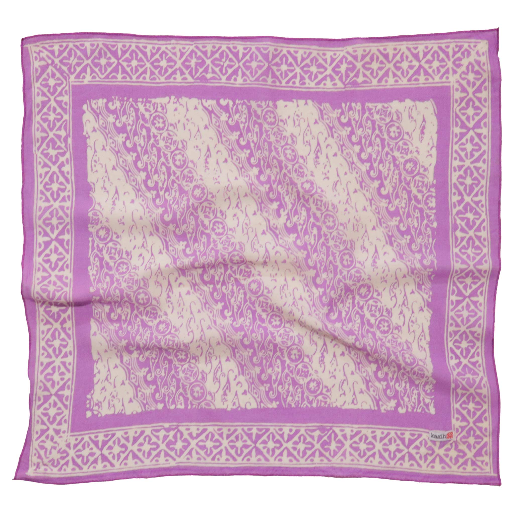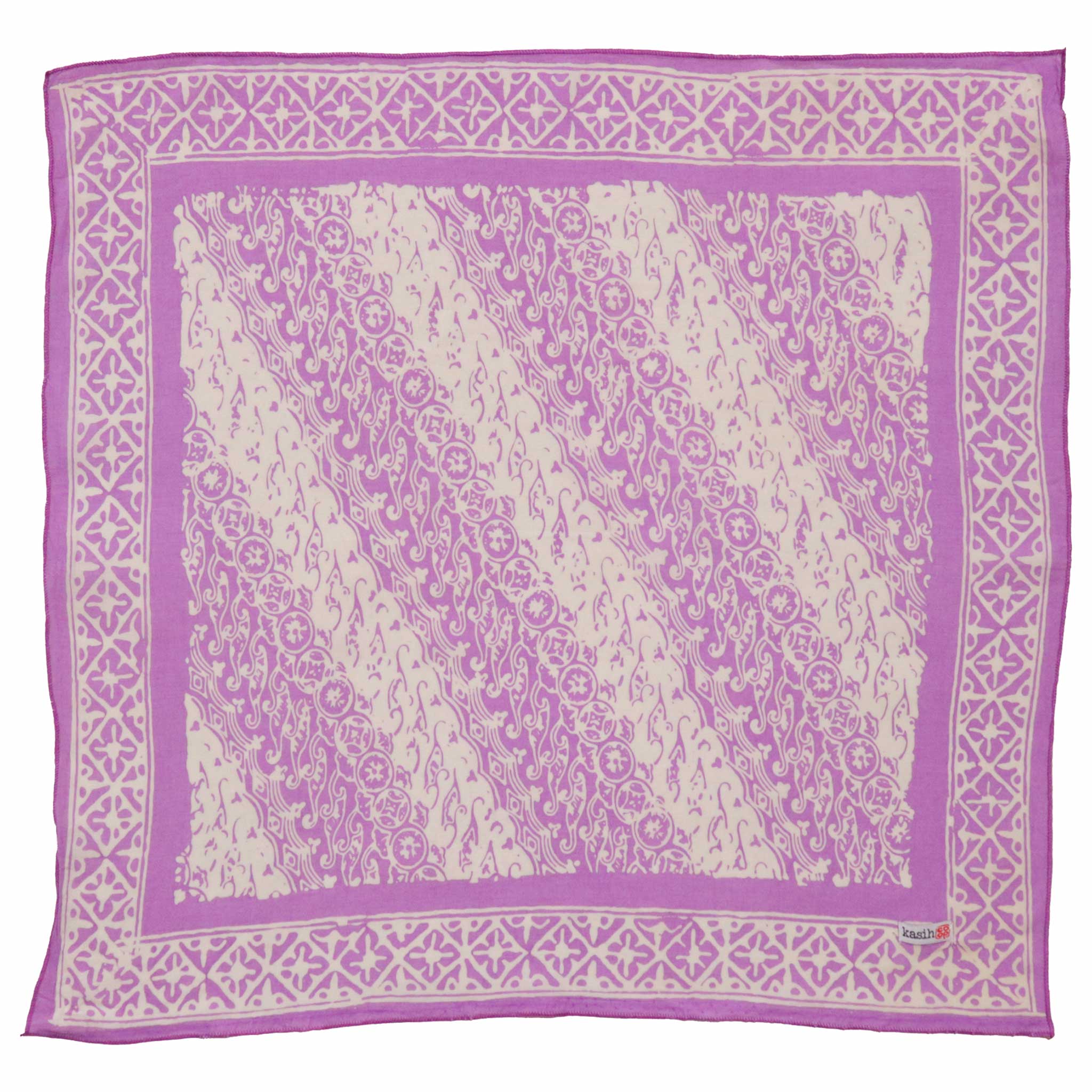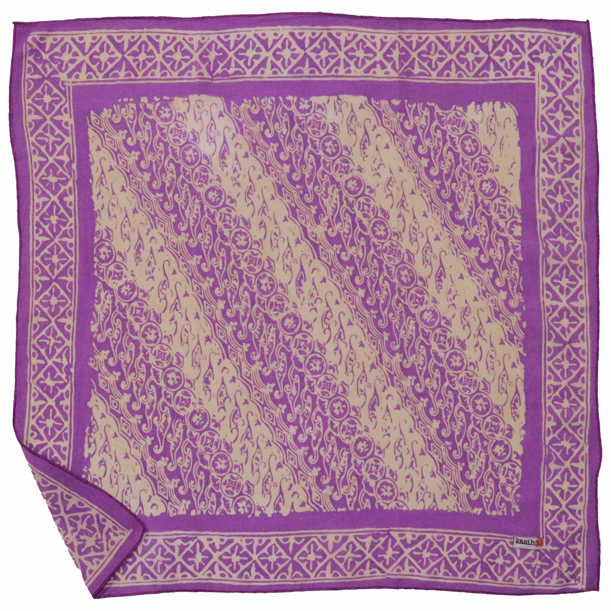 This is a hand-dyed and hand-stamped batik bandana, handmade by artisans. This fabric is handmade by artisans in Java using centuries old wax & dye batik technique.